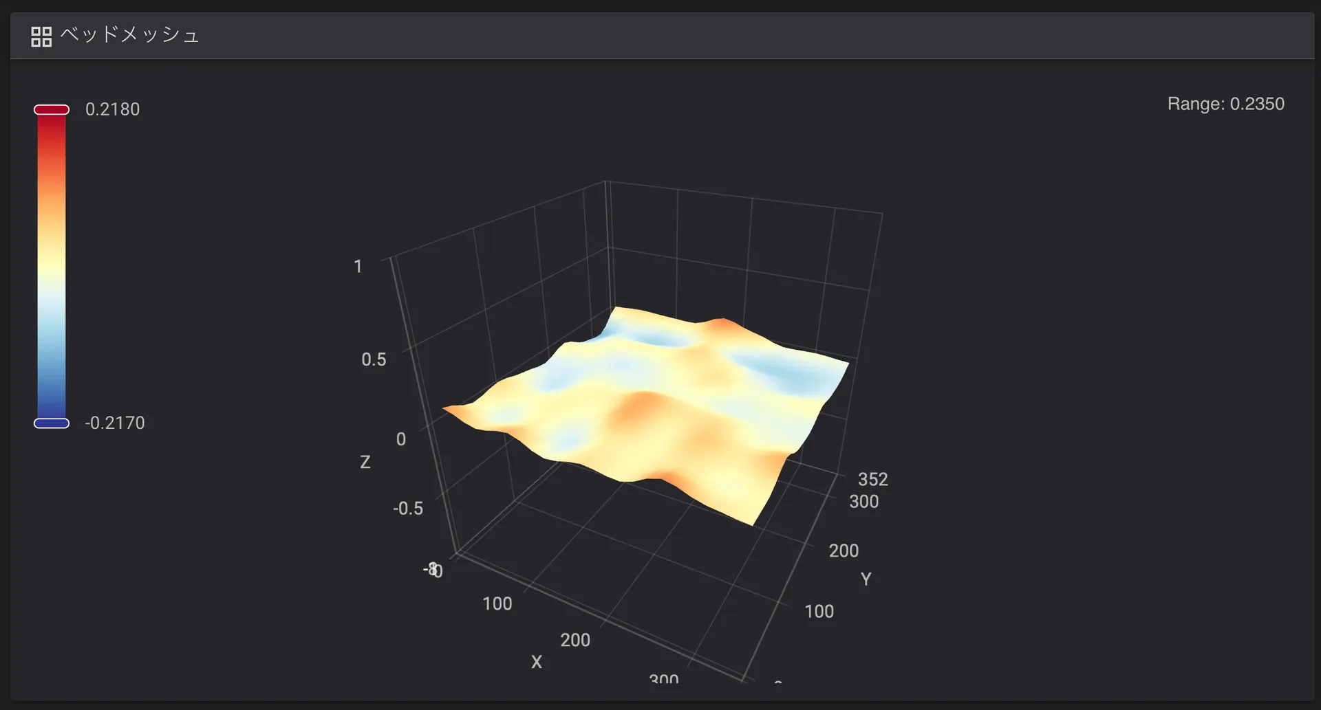 最終的なメッシュはこんな感じで、細かく波打ってはいますが、高低差が約0.3mmまで縮まりました。