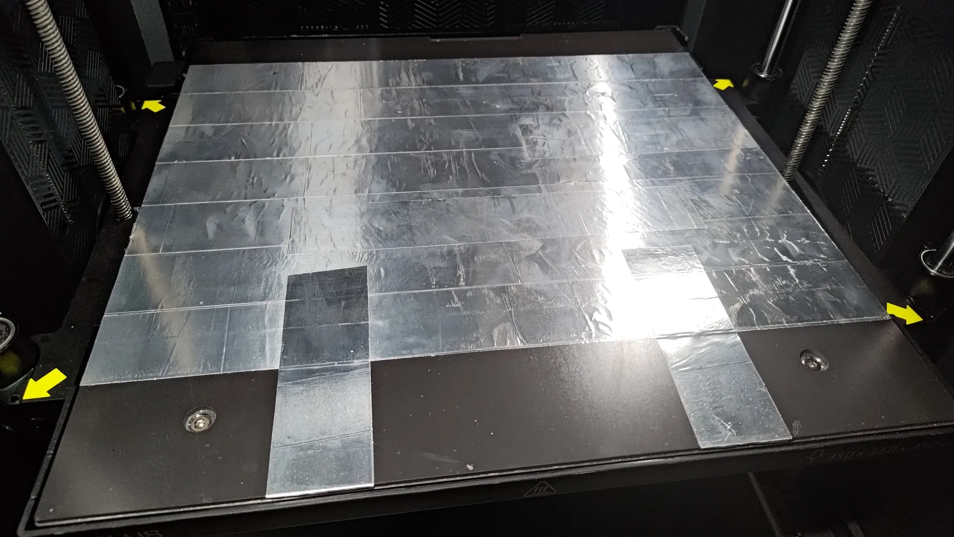 貼り終えたら、再度ベッドメッシュの計測を行って、また凹んでいる箇所にアルミテープを貼るを繰り返していきます。