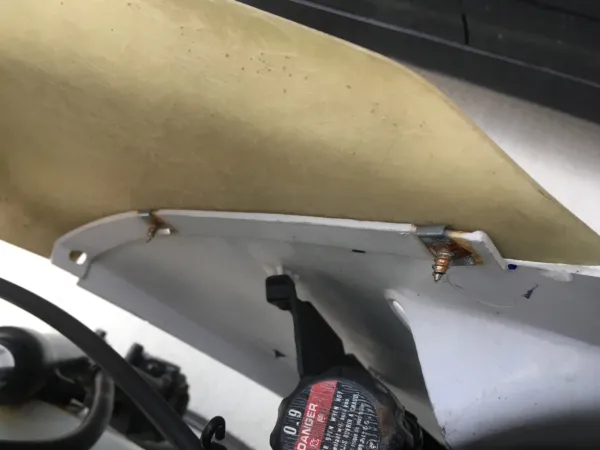メットインカバーとシートカウルも取り忘れましたがともに純正ですが、やはり傷が多数あり、シートカウルのシート取付部に関しては割れてましたね(写真のやつ)