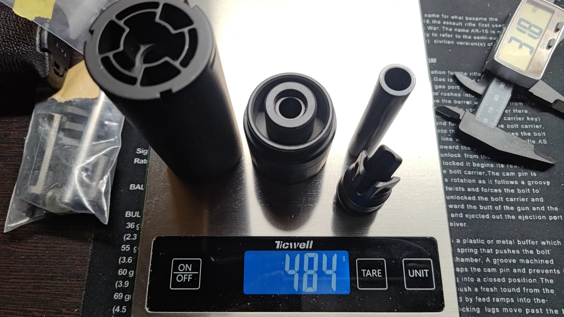 これを気に他のサプレッサーの重量も調べてみたのですが、SUREFIREのSOCOM556-RC3でも482gあるようです。