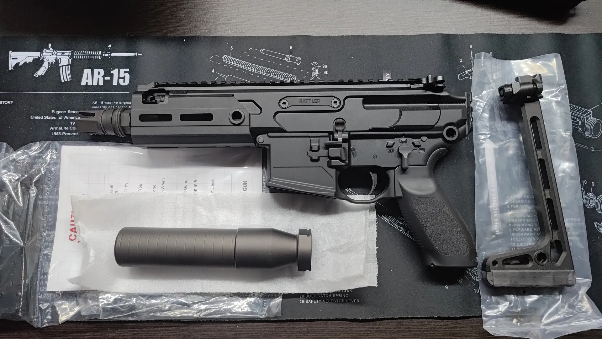 内容物は本体の他にSRD762-QDタイプのサプレッサーとミニマリストタイプのフォールディングストックが付属しています。