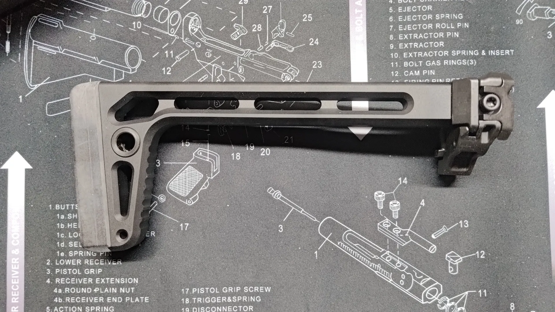 ストックですが、ミニマリストタイプのフォールディングストックが付属しています。