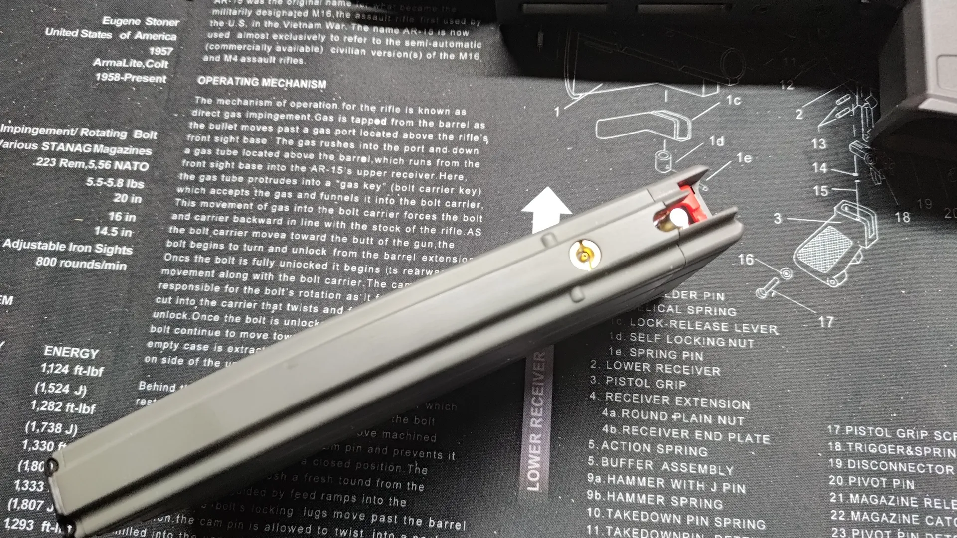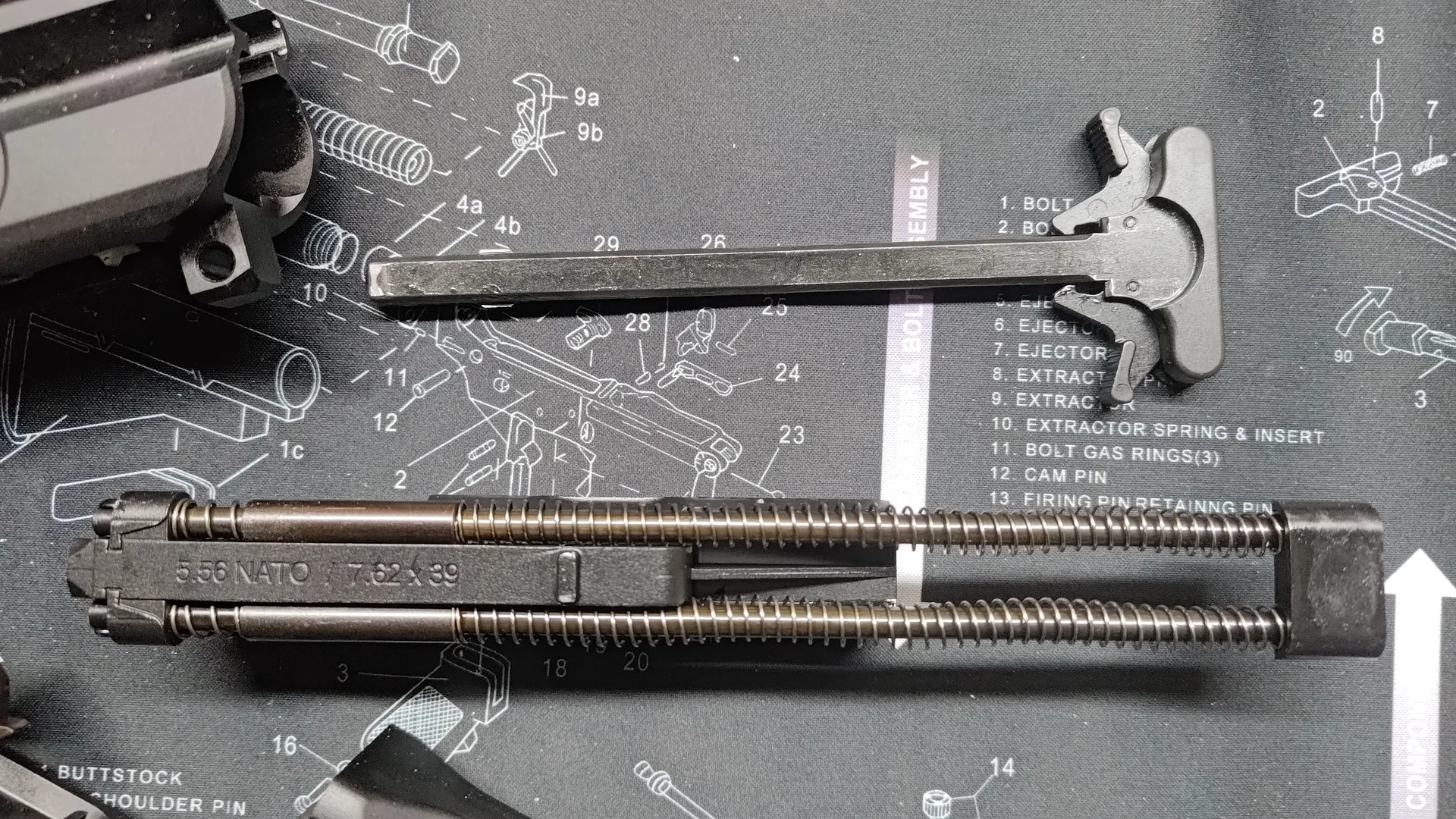 ボルトキャリアの上面には「5.56 NATO / 7.62x39」の刻印がありました。