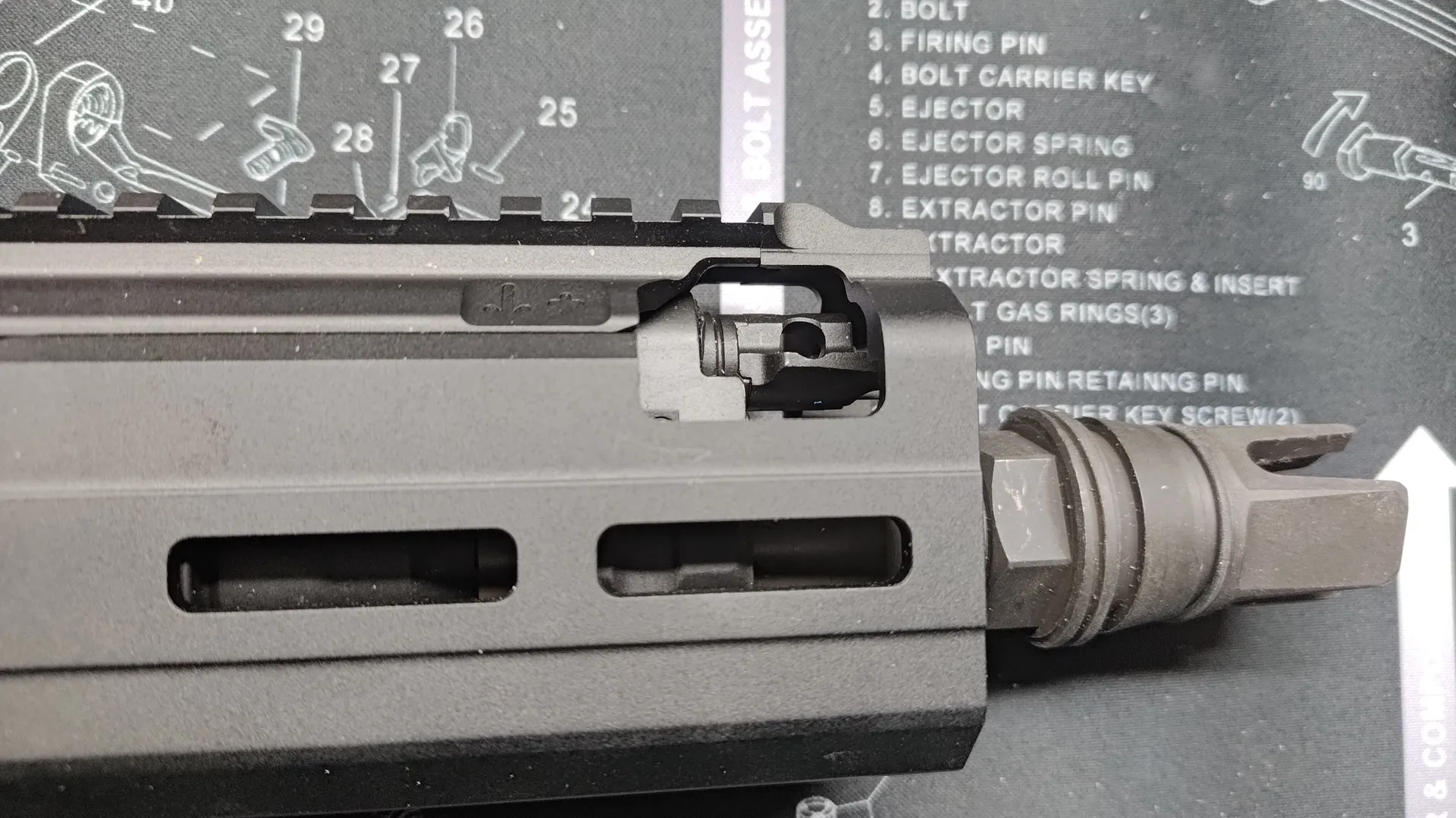 チャージングハンドルは長さ的にはM4系の実が使えそうな気がしますが、形状が一部独自なため、M4系のチャージングハンドルは使用できません。