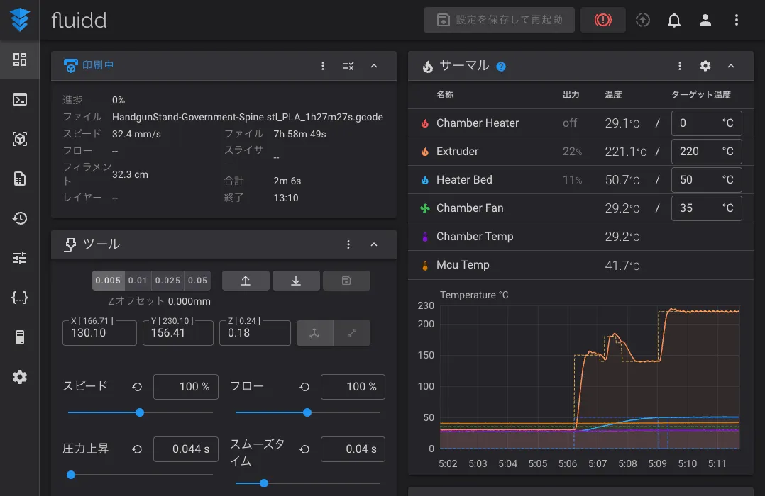 本設定は3Dプリンターの挙動に手を加えますので、自己責任でお願いします。 各設定を弄る前には必ずバックアップを取ってください。 また、設定をいじる際には3Dプリンターはアイドル状態で何も印刷していない状態にしておいてください。