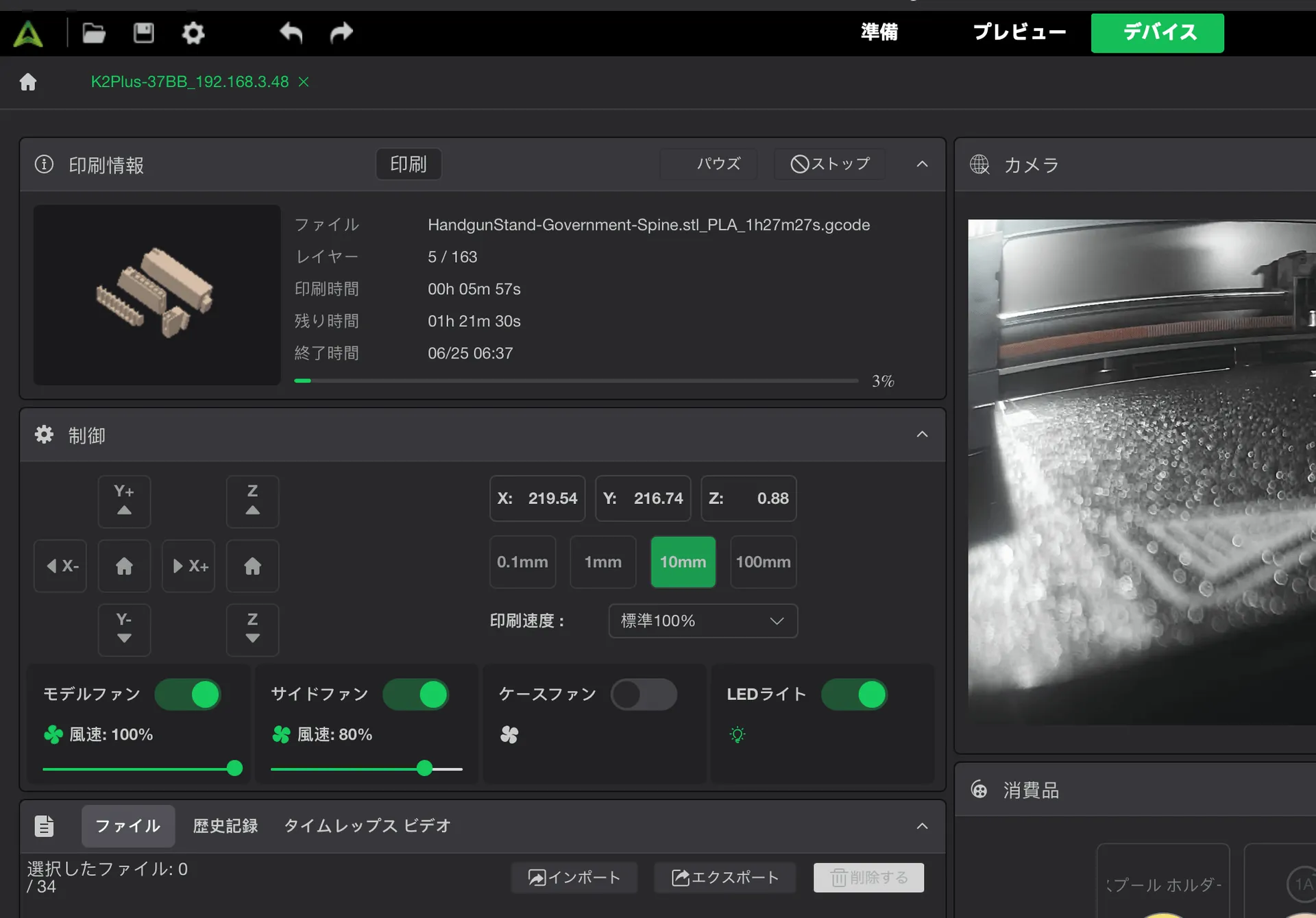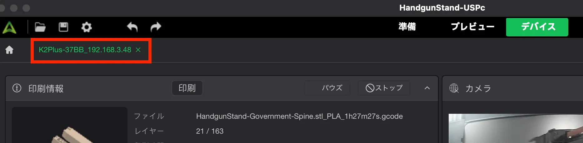 そうすると管理画面が表示されます。 名前は3Dプリンターの名前になっているようです。