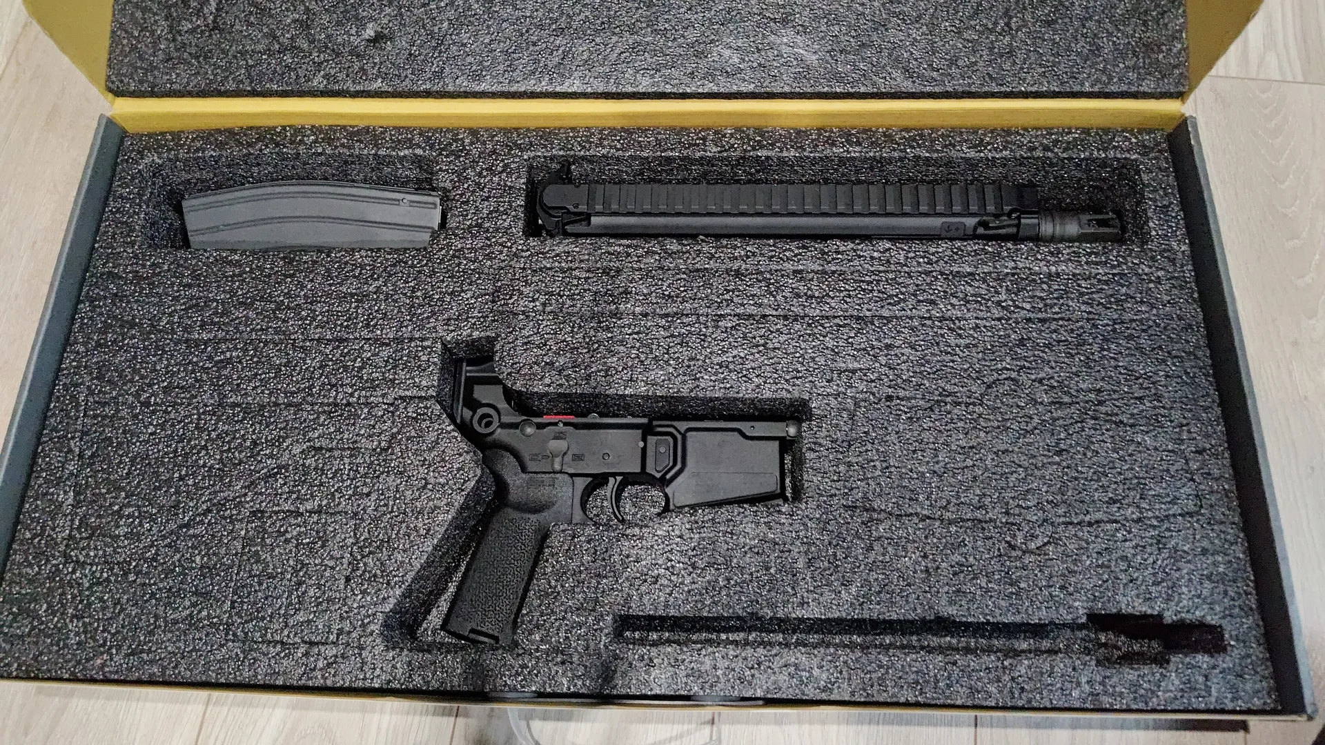 化粧箱はかなり大きいですね。 というのも、どうやら他機種と共用のケースのようなので、rattlerみたいな小型のライフルだとかなり中身がスカスカ(緩衝材埋め)です。