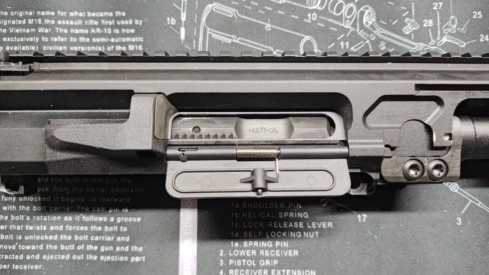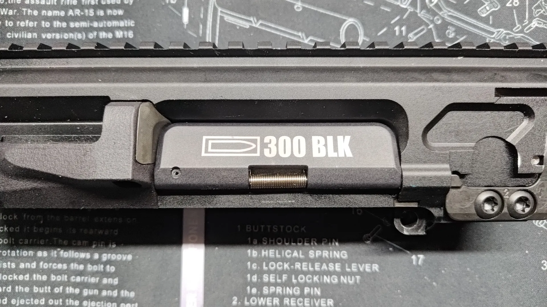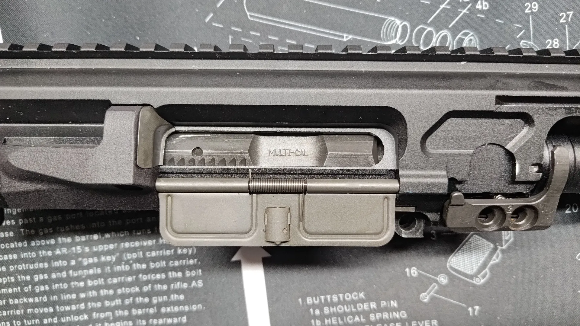 このダストカバーはmws規格ではあるのですが、ピン部分が実規格のようで、mws規格のボルトキャリアだと逃げが浅く閉まらないものになります。