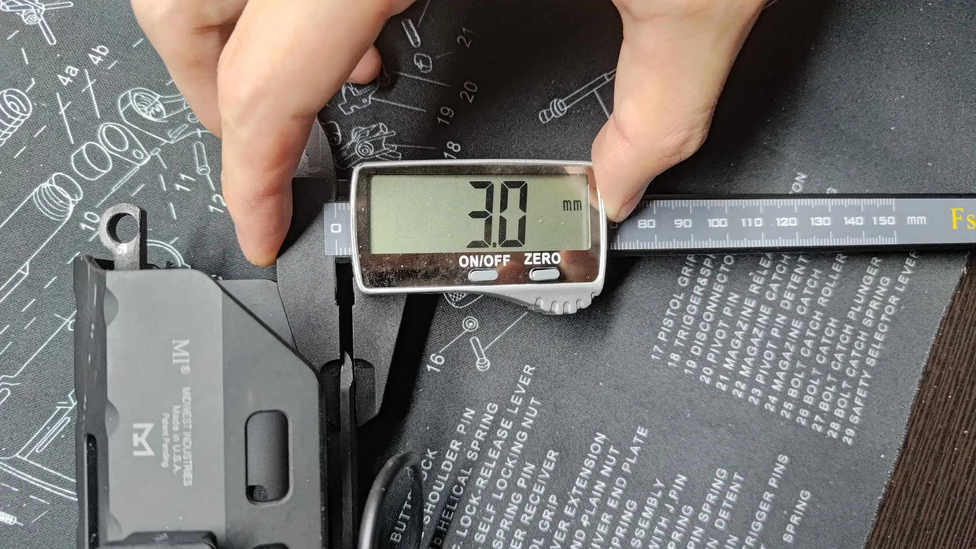 まずは以前も記載しましたが、おさらいで実物のハンドガードはレシーバーの溝部分の厚みは3.0mmです。