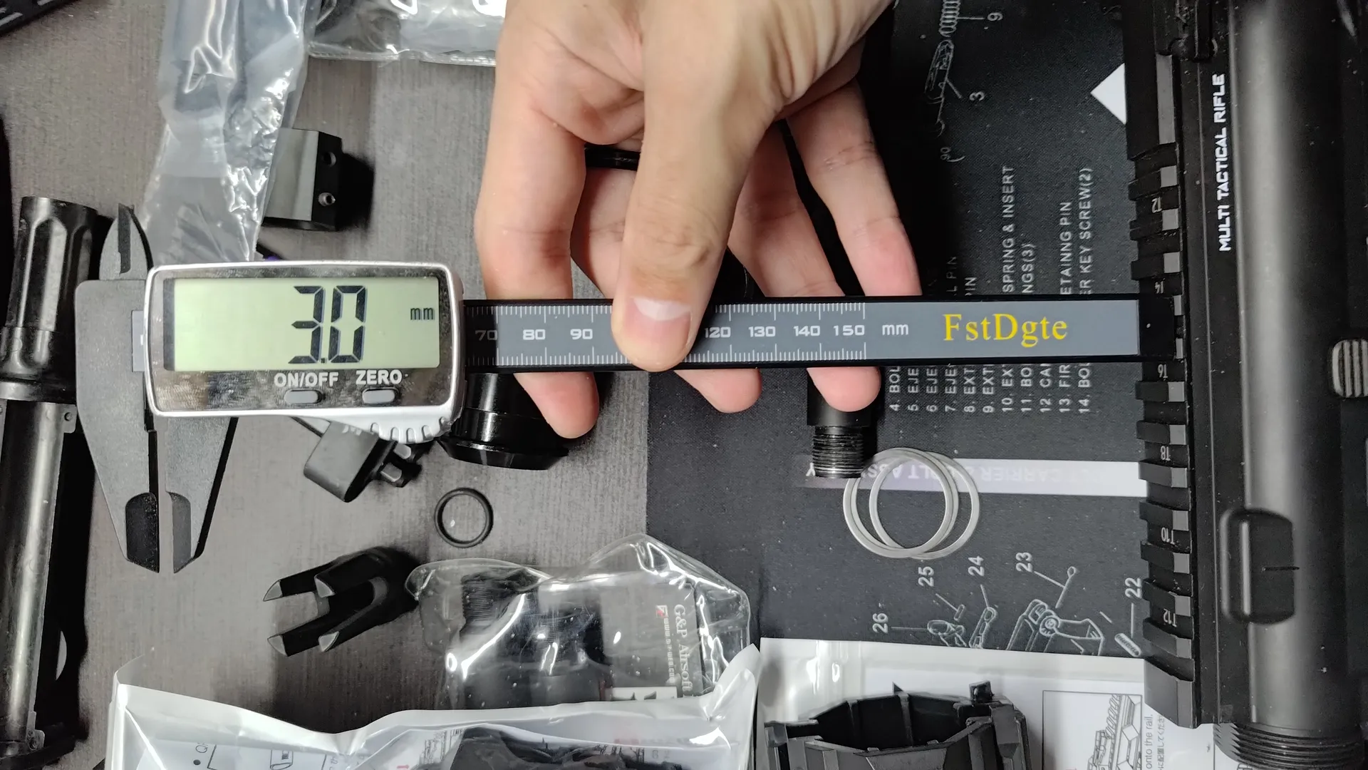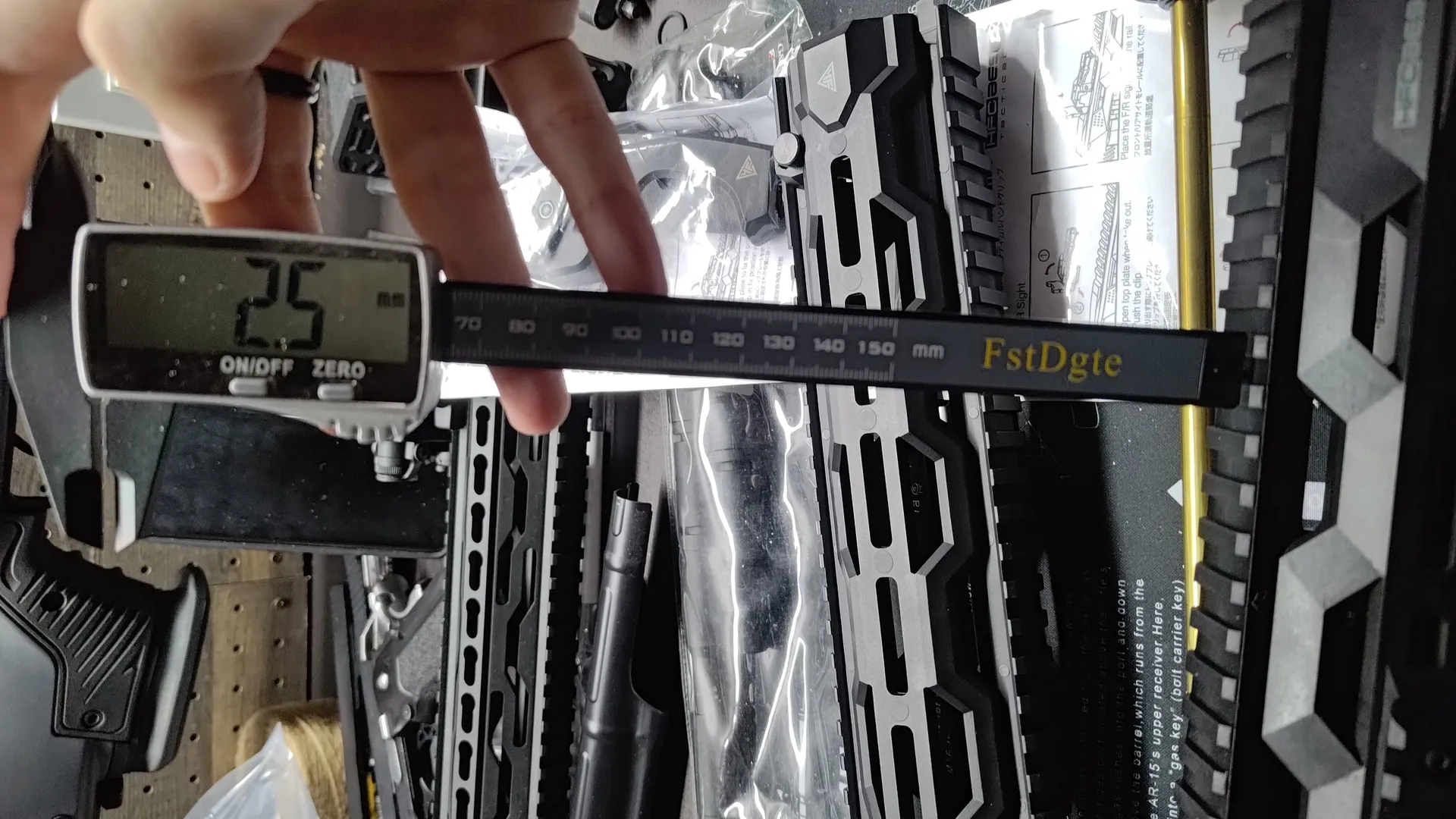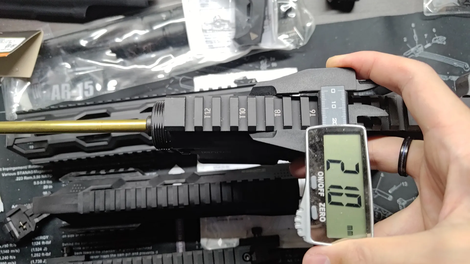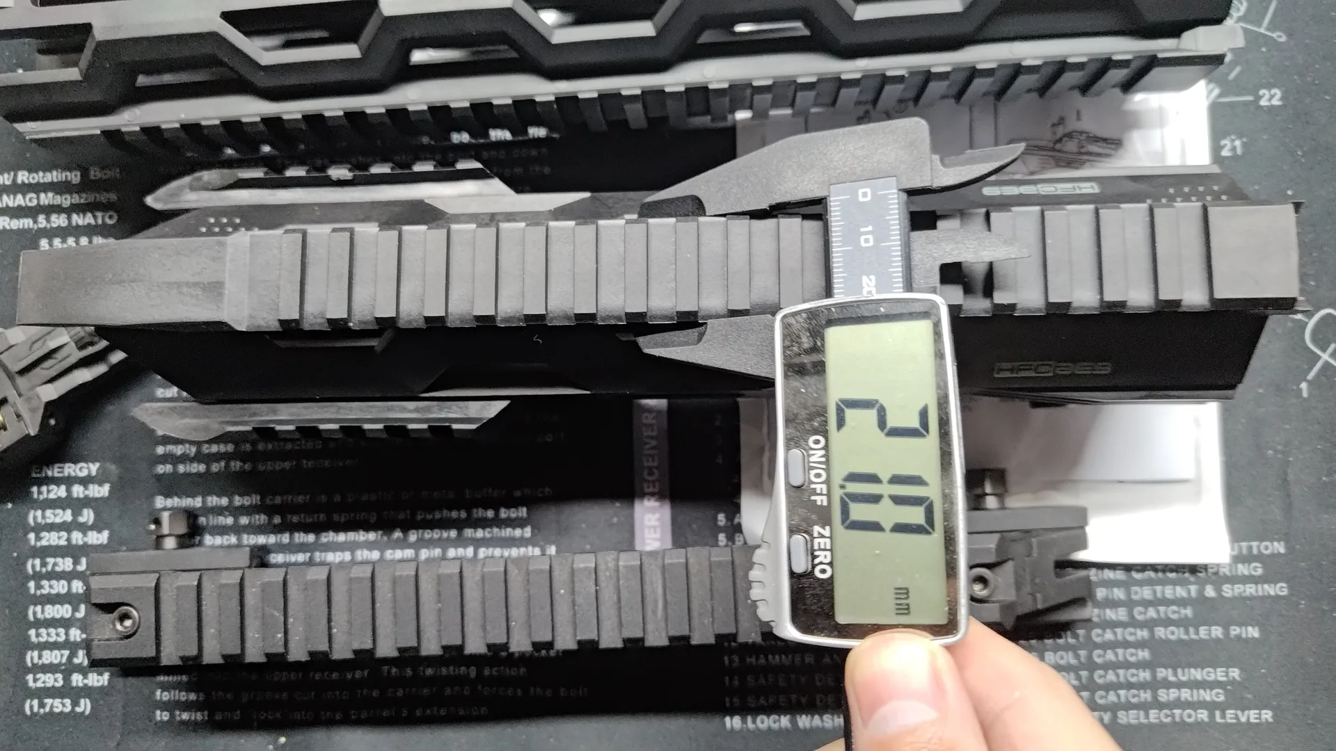 レール幅が違うのかとおもってHFCのハンドガードとMTR16のハンドガードのレール幅を測ってみましたが、どちらも21mmで特に変わりはなく