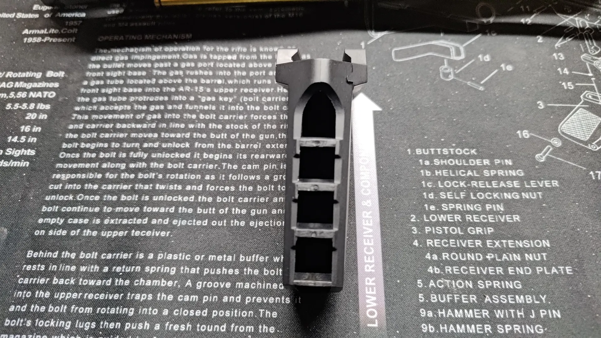 ただこの溝部分が結構クリアランスが大きいらしく、ハンドガードにバレルナット単体を入れてみると約5mmほど前後するので、レシーバーに取り付ける際には要調整になります。