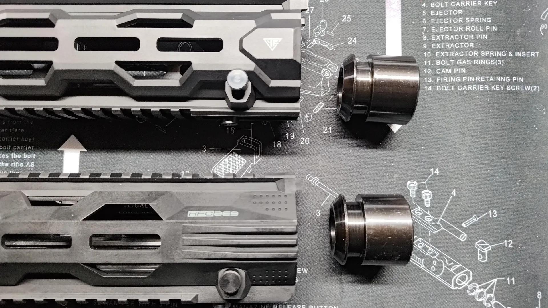具体的にはアウターバレル基部の直径が21.8mmよりも太いとHFCのハンドガードは使用できません。
