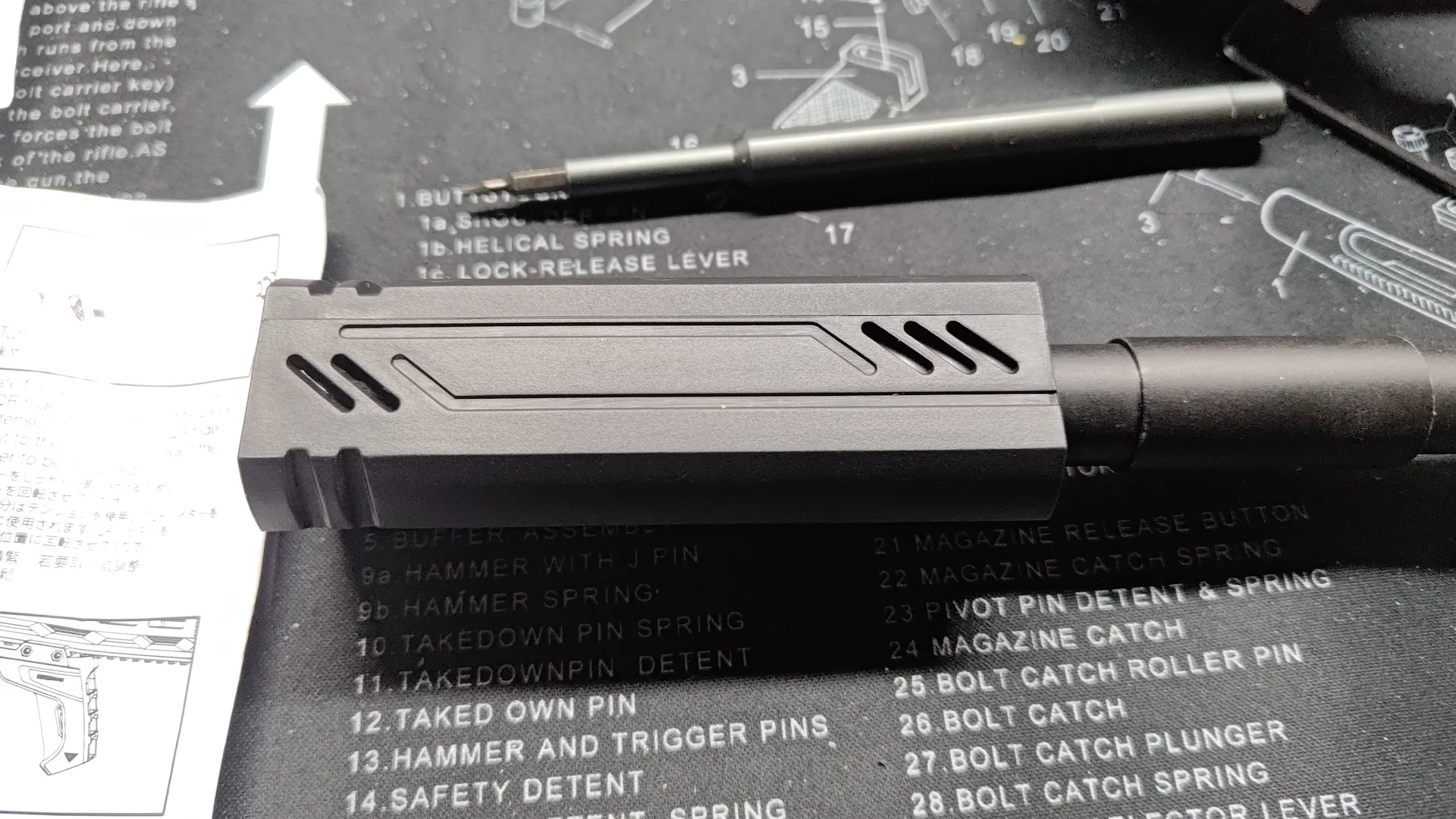 調べたところこちらの製品は純正アウターバレルと同一の寸法のようなので今回のバレルナットでも無事取り付けができました。