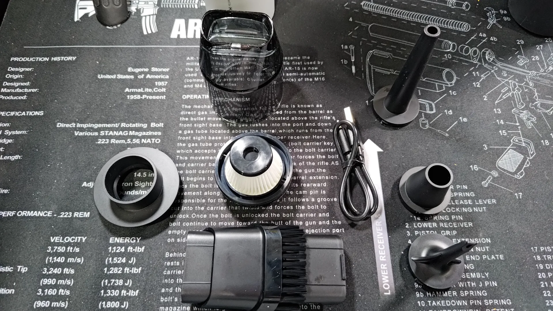 掃除機用とエアダスター用でいくつかのアタッチメントと充電用のUSBコードがついてきます。