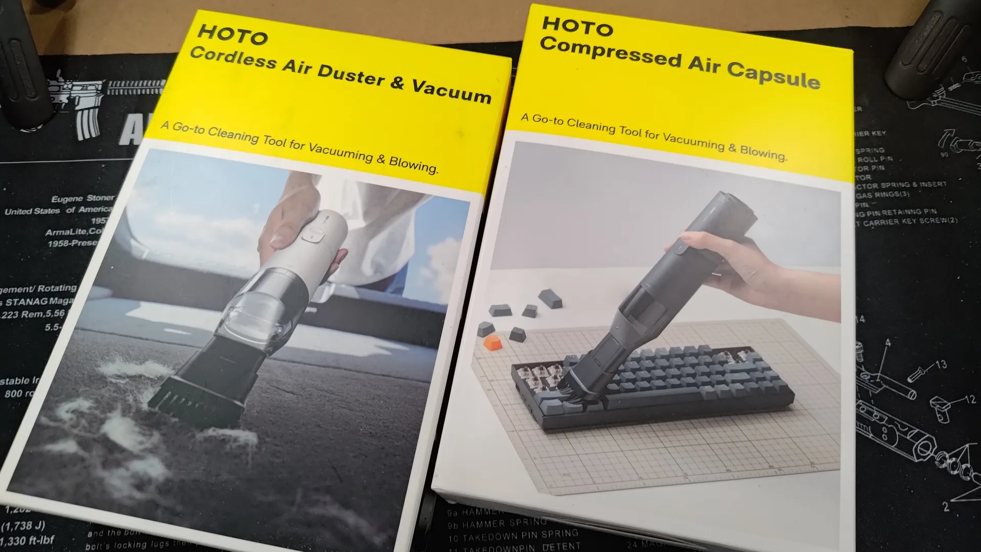 これはHOTOから出ている充電式の掃除機とエアダスターが一緒になった製品です。