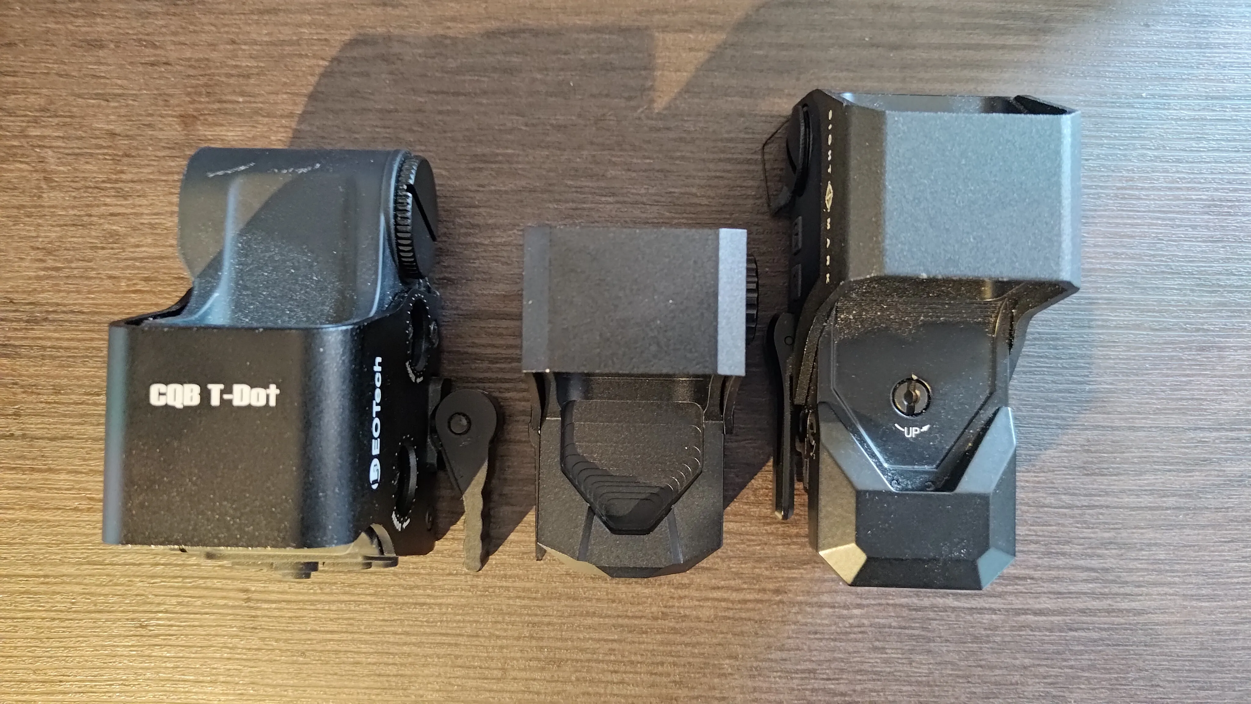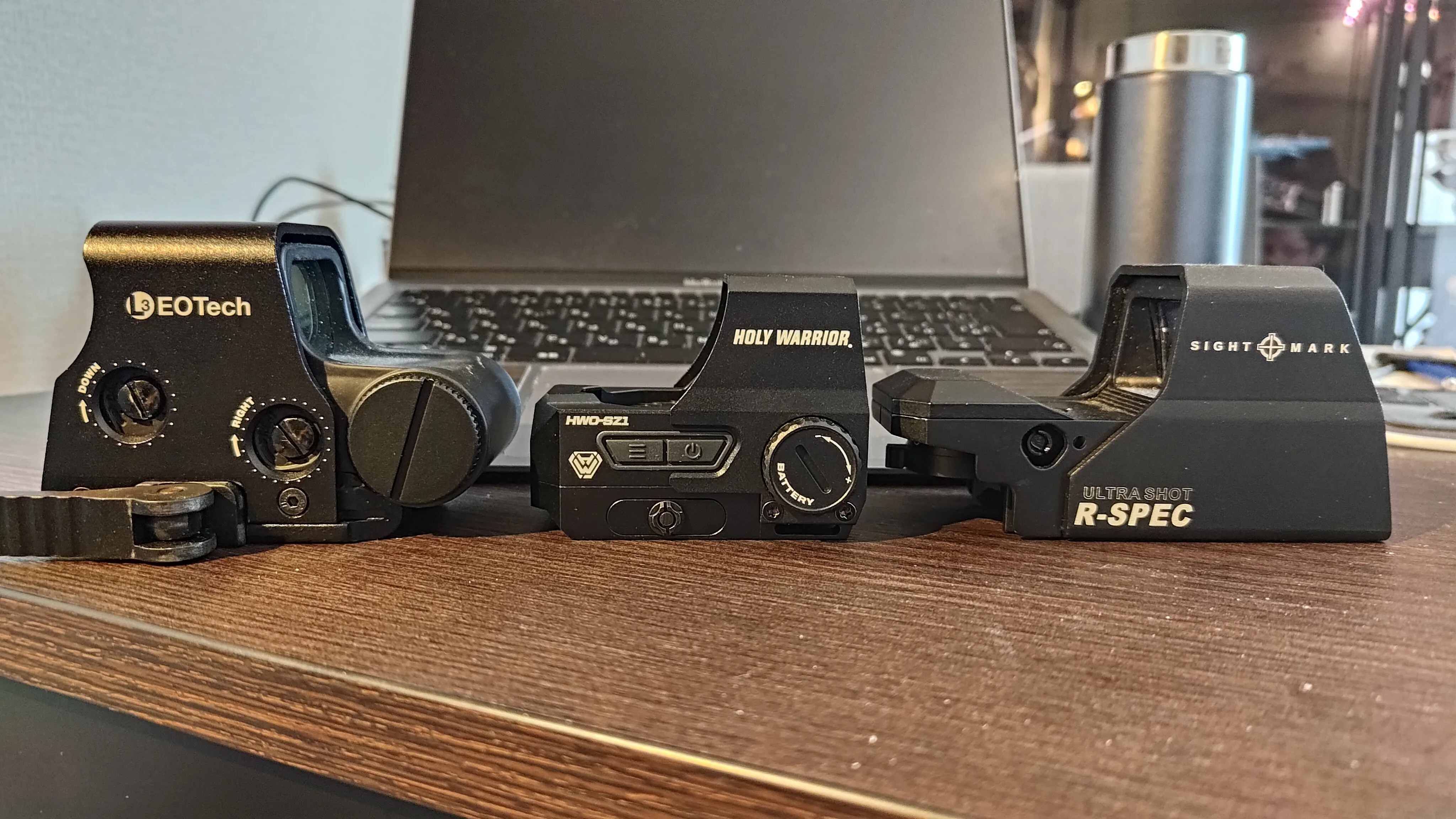 手元にeotech xps3(レプリカ)とSightmark Ultra Shot R-Specがあるので、簡単にサイズの比較をしてみます。
