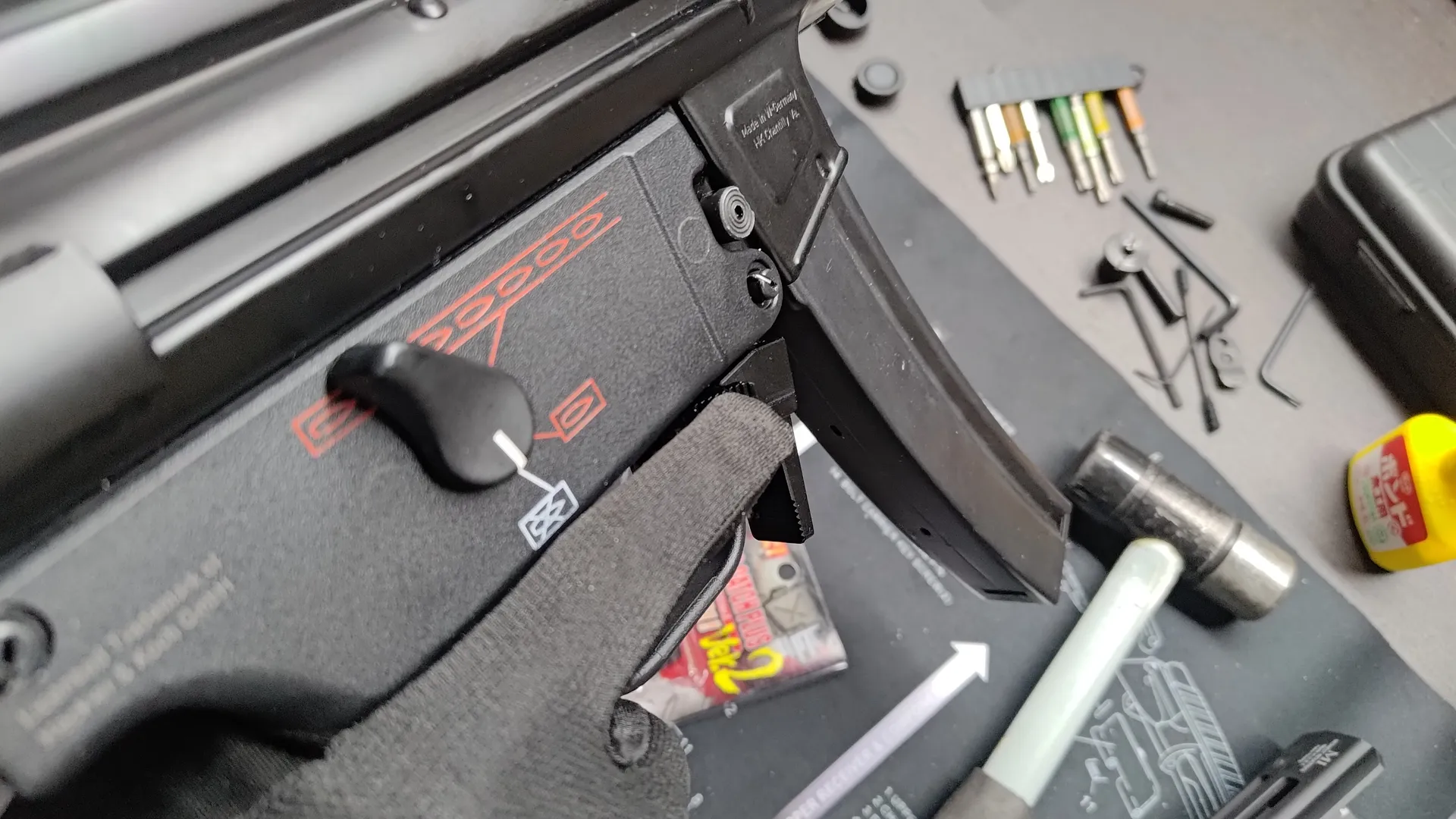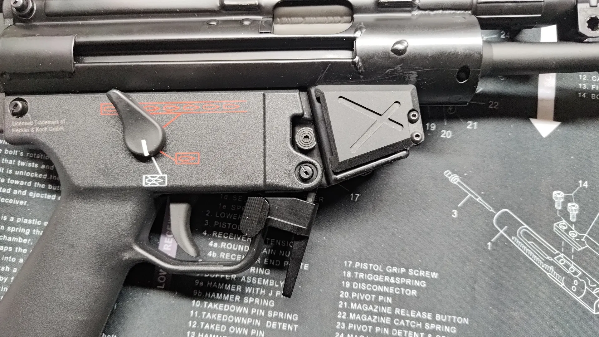 MP5Kにマガジンリリースレバーやマガジンキャッチプラスを取り付け