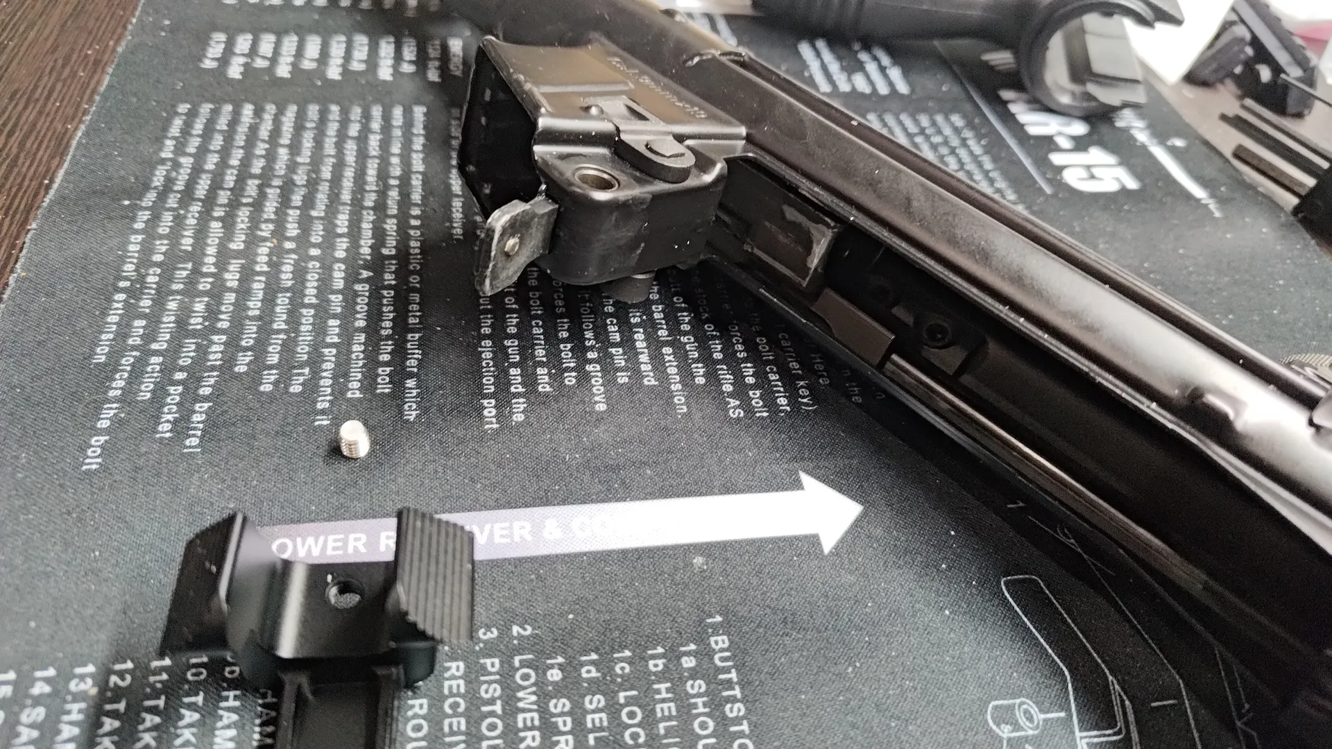 取り付けるときにはロアレシーバーが邪魔になるので外してから作業するとやりやすいです。