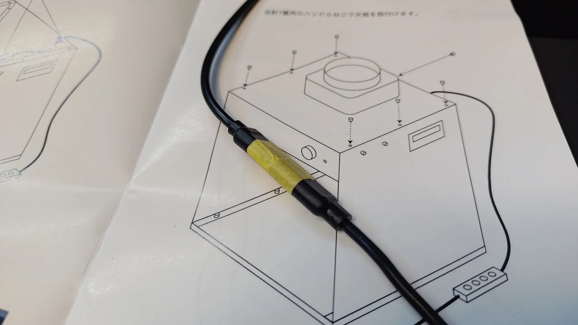 1本は照明用のスイッチを経由してUSB-Aが、もう1本はファンの電源用のコンセントプラグになります。 ACアダプタのようなものはなかったので、おそらく本体のファン近くに内蔵されているんだとおもいます。