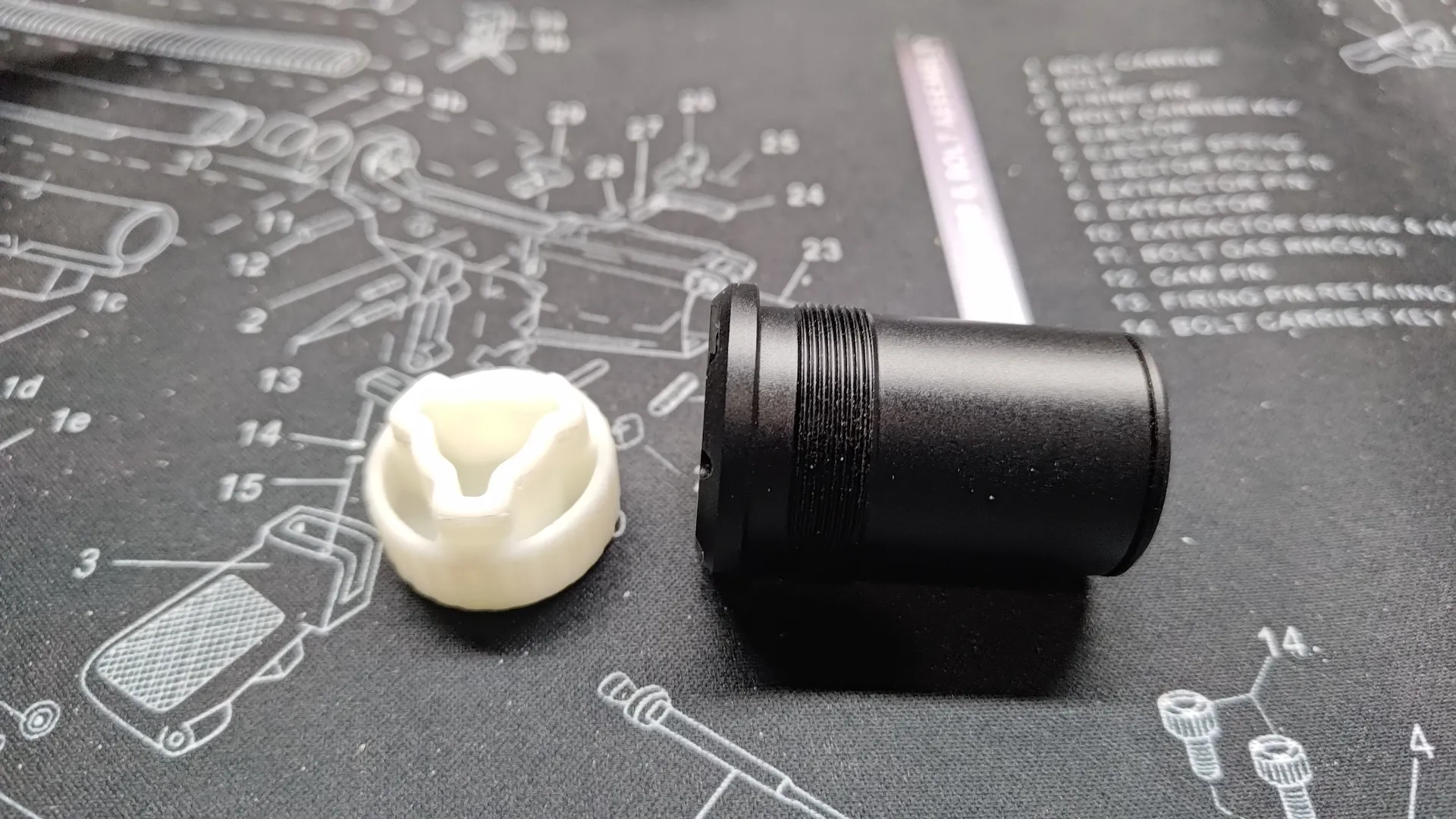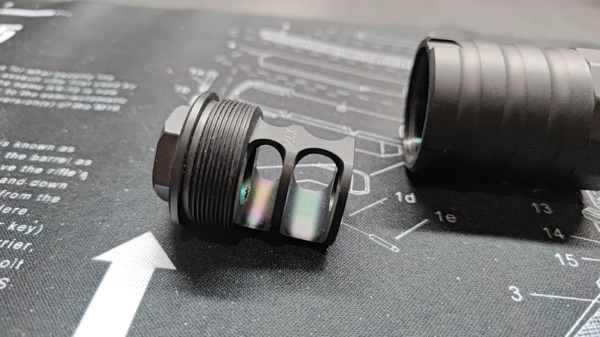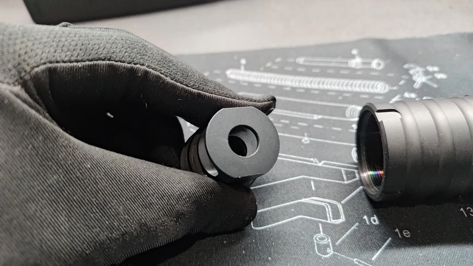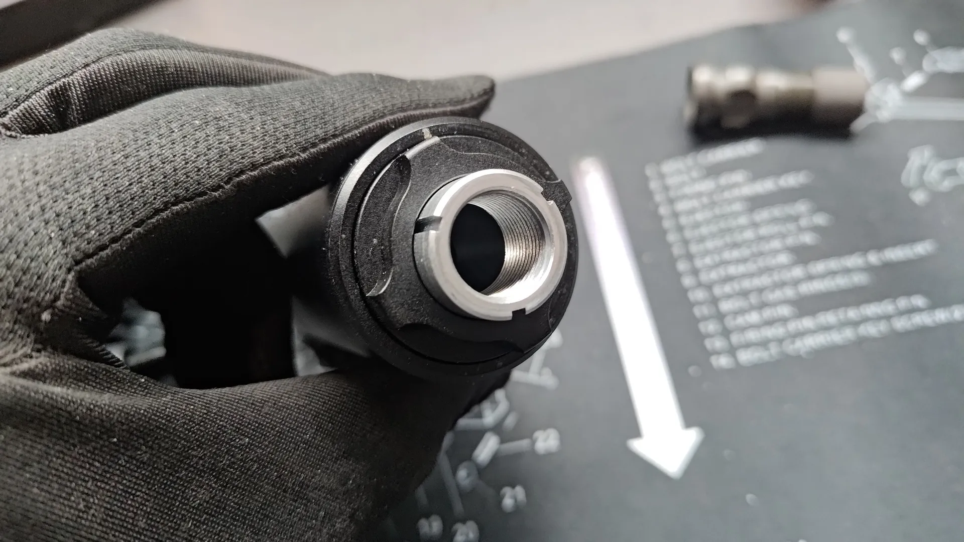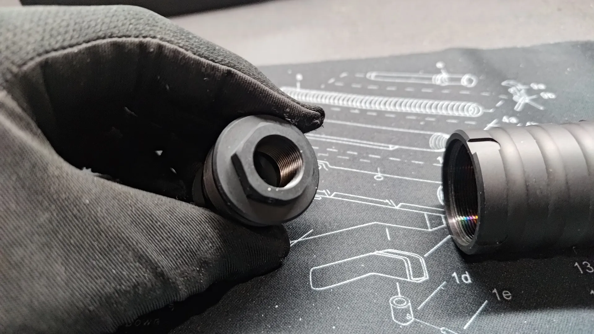 こちらは14mm逆ネジアダプターのようにサイレンサーとの間にスプリングなどの緩み止め機能はないため、ロックタイトなどを塗布しておいたほうがいいと思います。