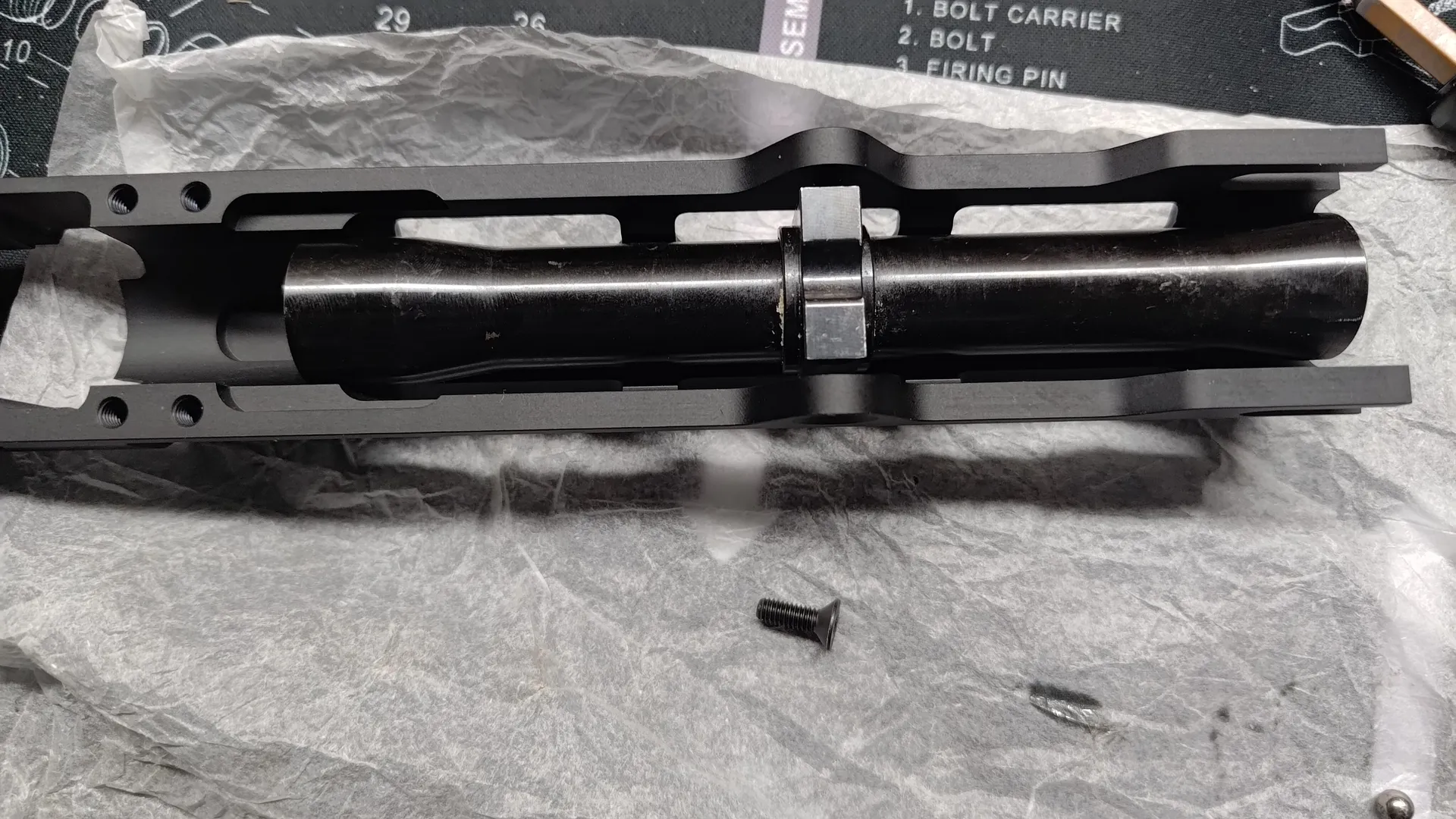トップレールカバーが固定できたら、この段階で一応ボルトキャリアを入れておいて軽く動作確認しておいたほうが良いかもしれません。