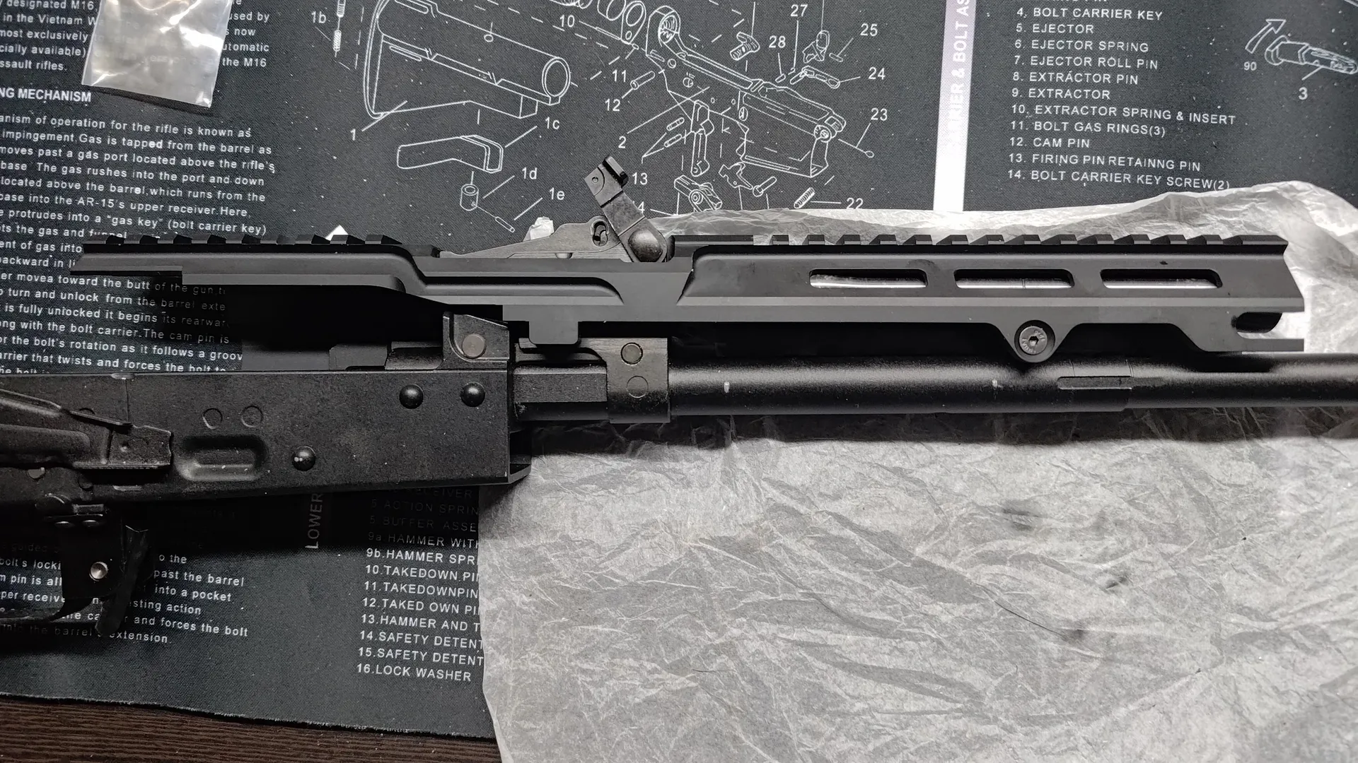ちなみに一見リアに突き出しているレールのせいでボルトキャリアを入れられないような気がしますが、ギリギリなんとか入りました。