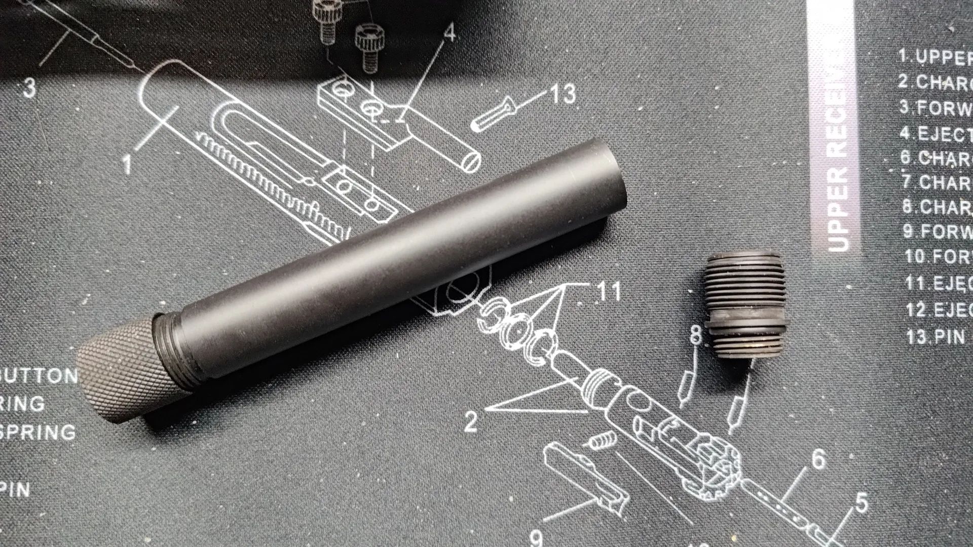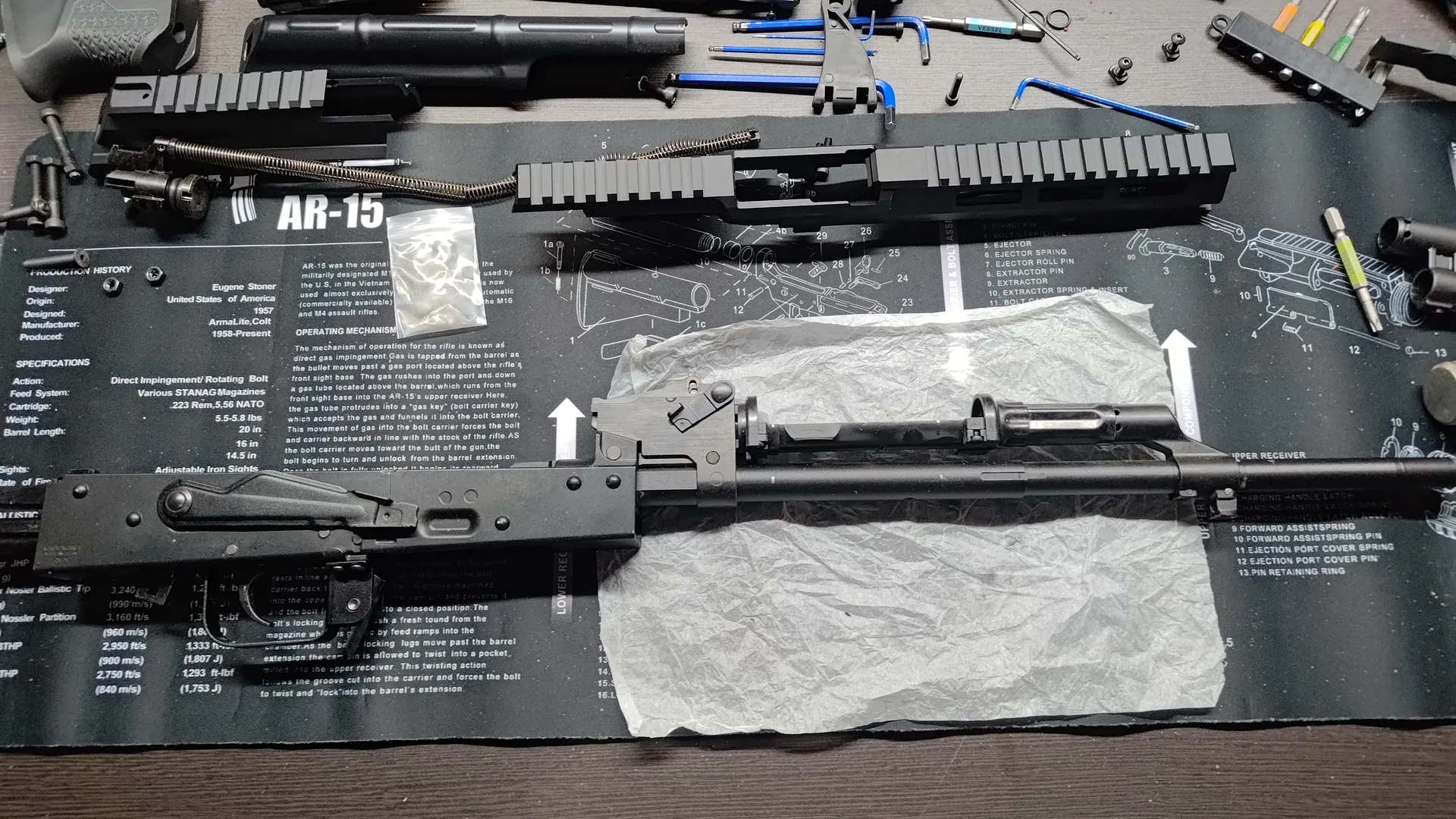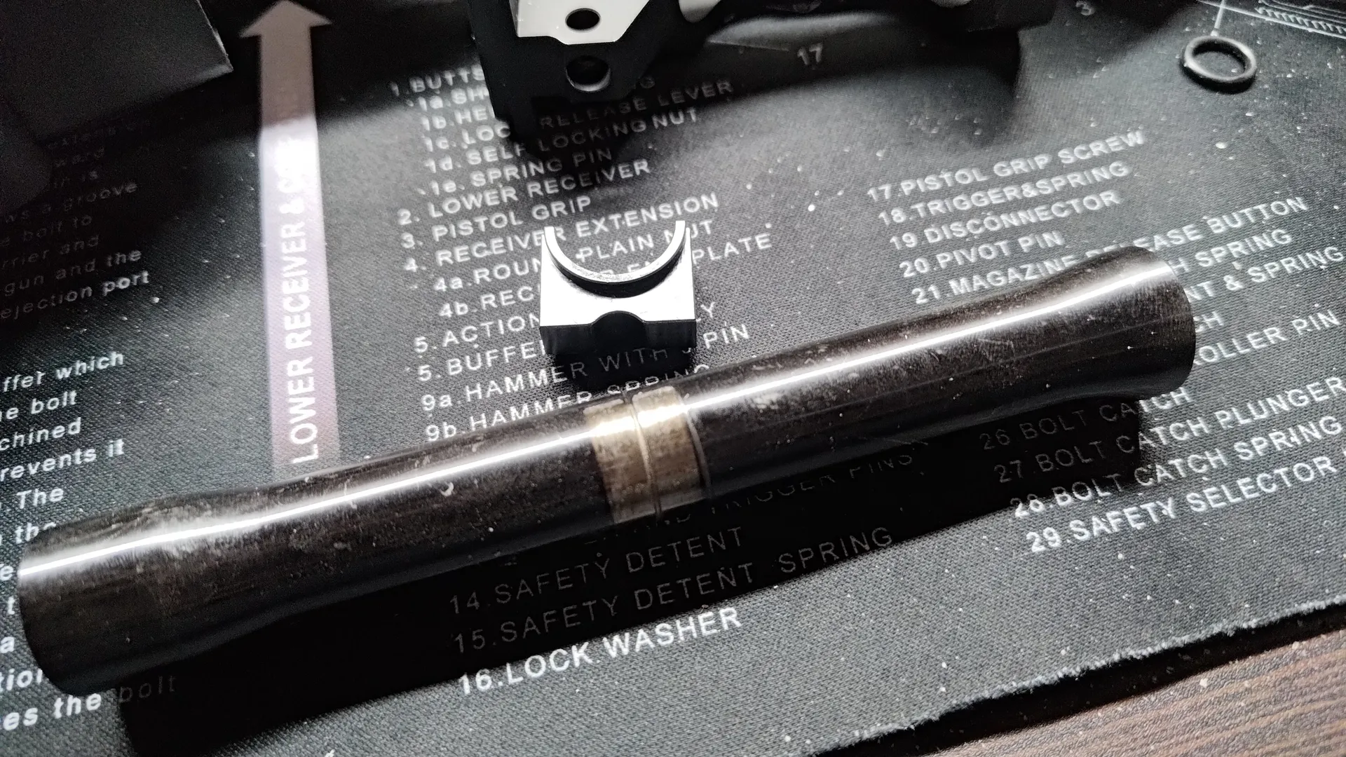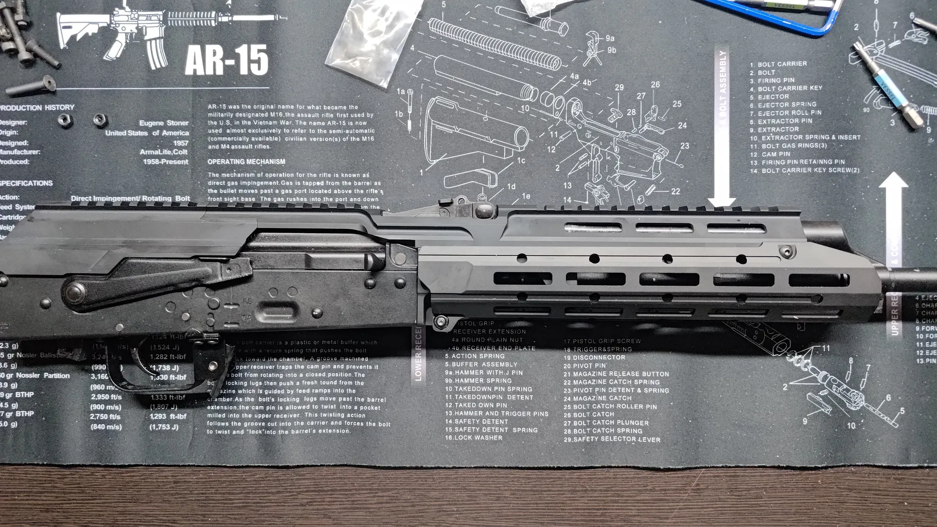 フロント周りと後部トップレールカバーですね。 ついでにボルトキャリア周りも外しておいたほうが良いかと思います。