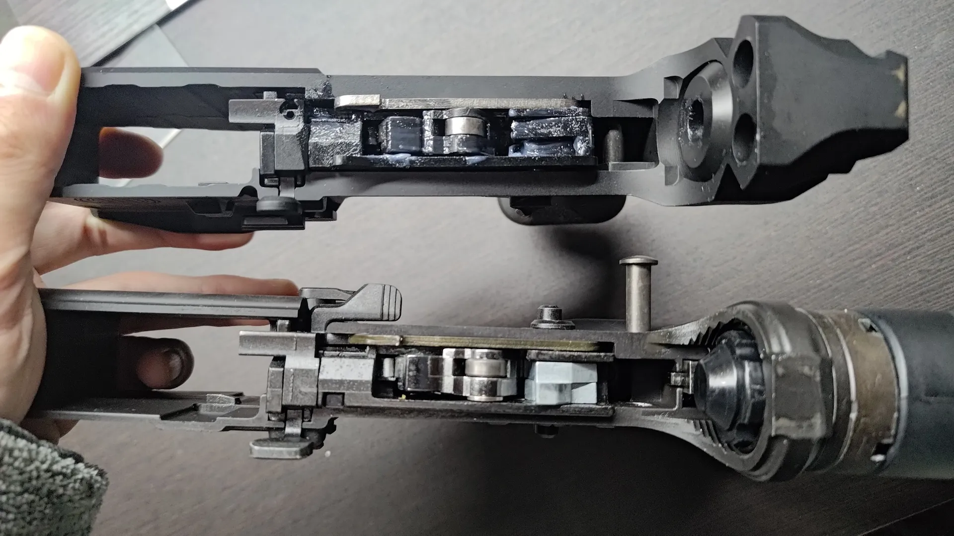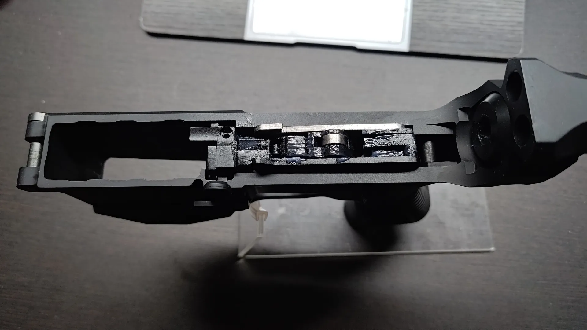 情報提供があり、どうやらボルトキャリアの上部ローラーが摩耗した結果グリスが変色してるようです。