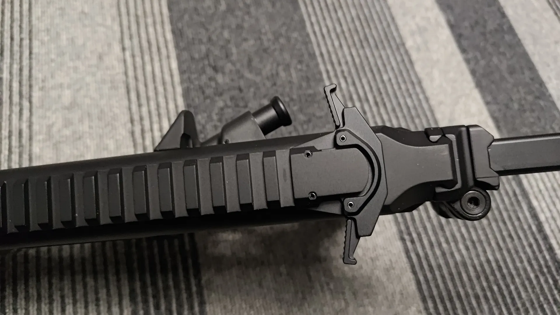 ハンドガードは10.5inchモデルなので、先端からガスブロックの調節ネジがチラ見えしてますね。 稼働はせずダミーのようです。