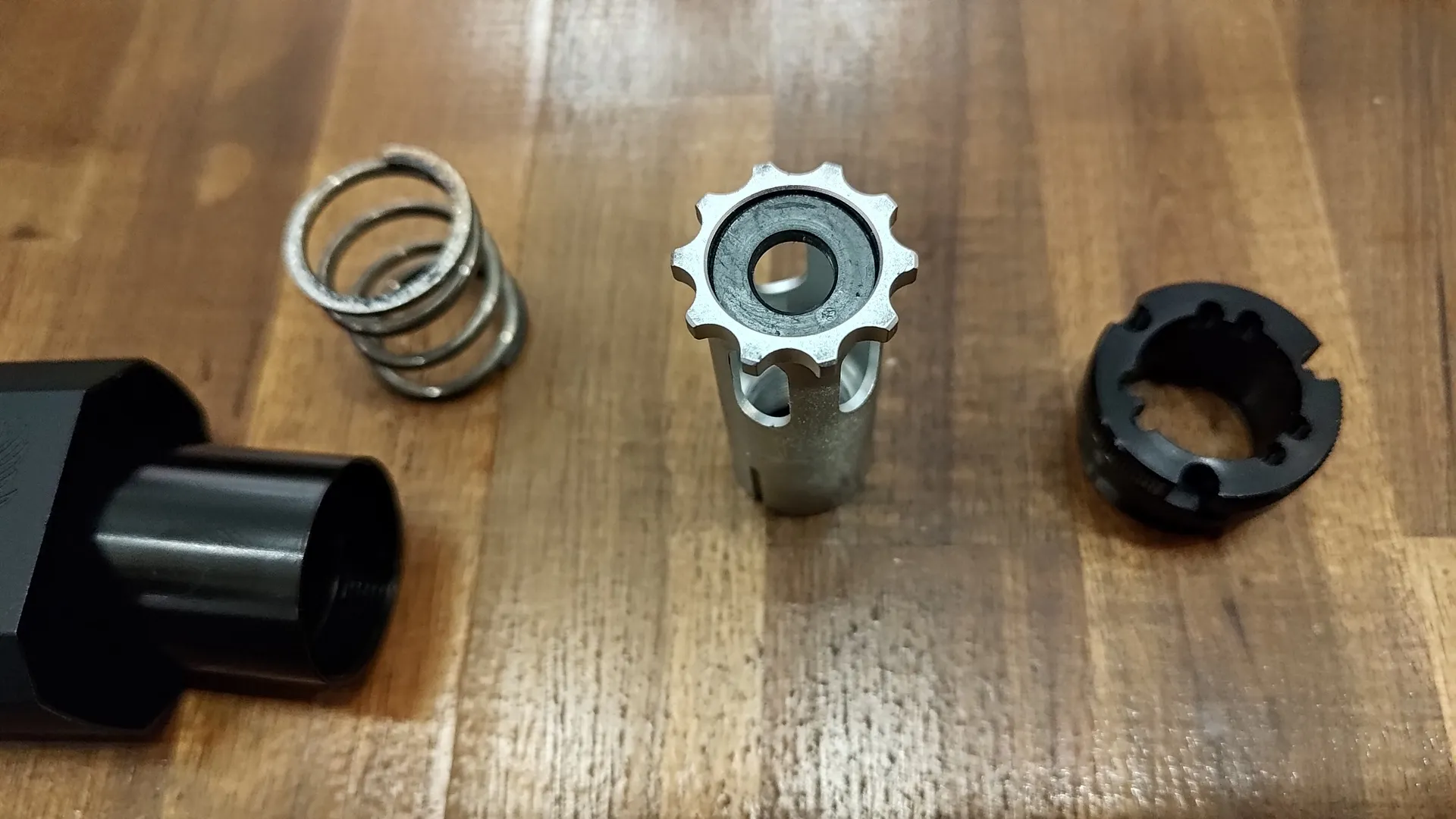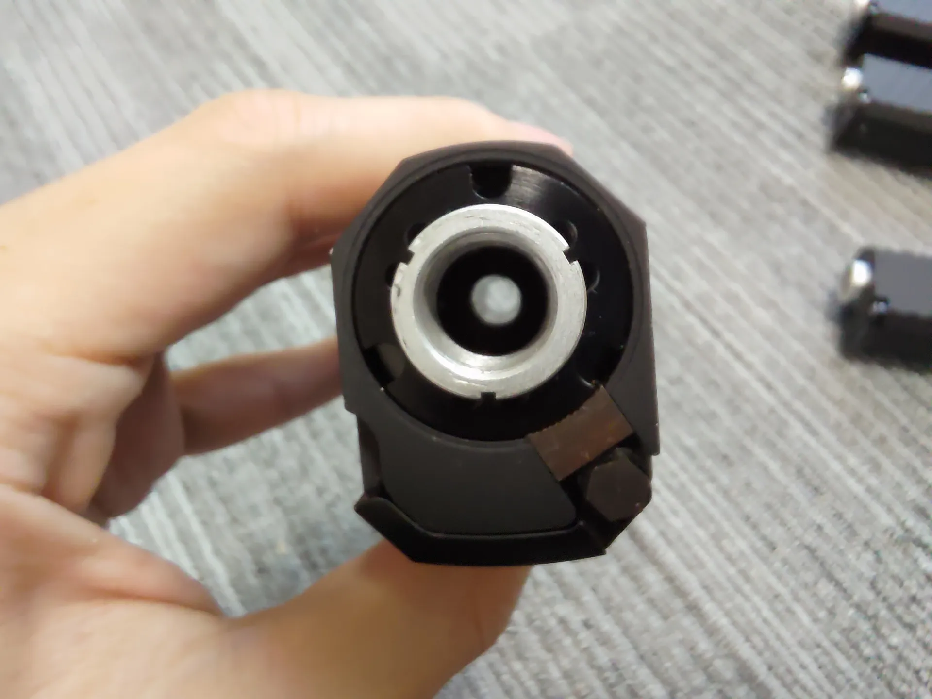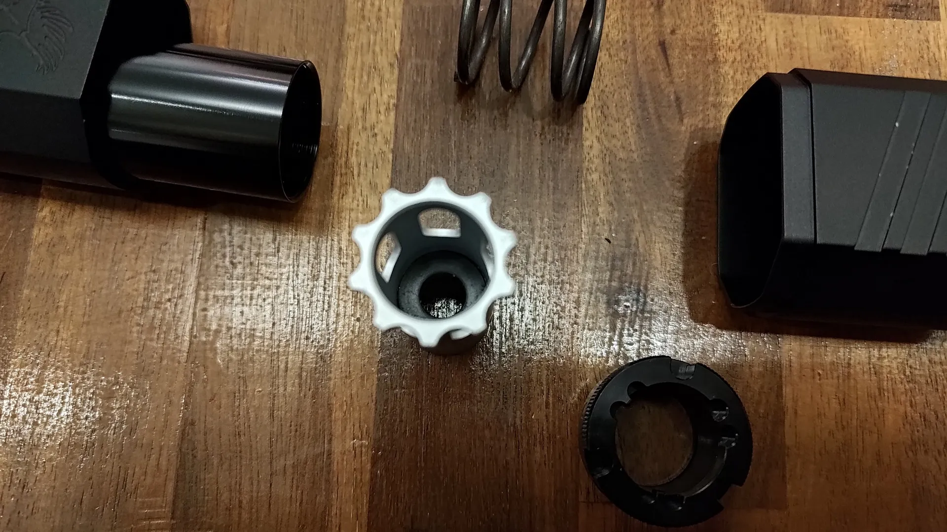 正直サイレンサー内部にインナーバレルが内蔵されていないのなら不要な代物なので、取り除きます。 取っ払えばアウターバレルからインナーバレルがはみ出ても問題ないので。