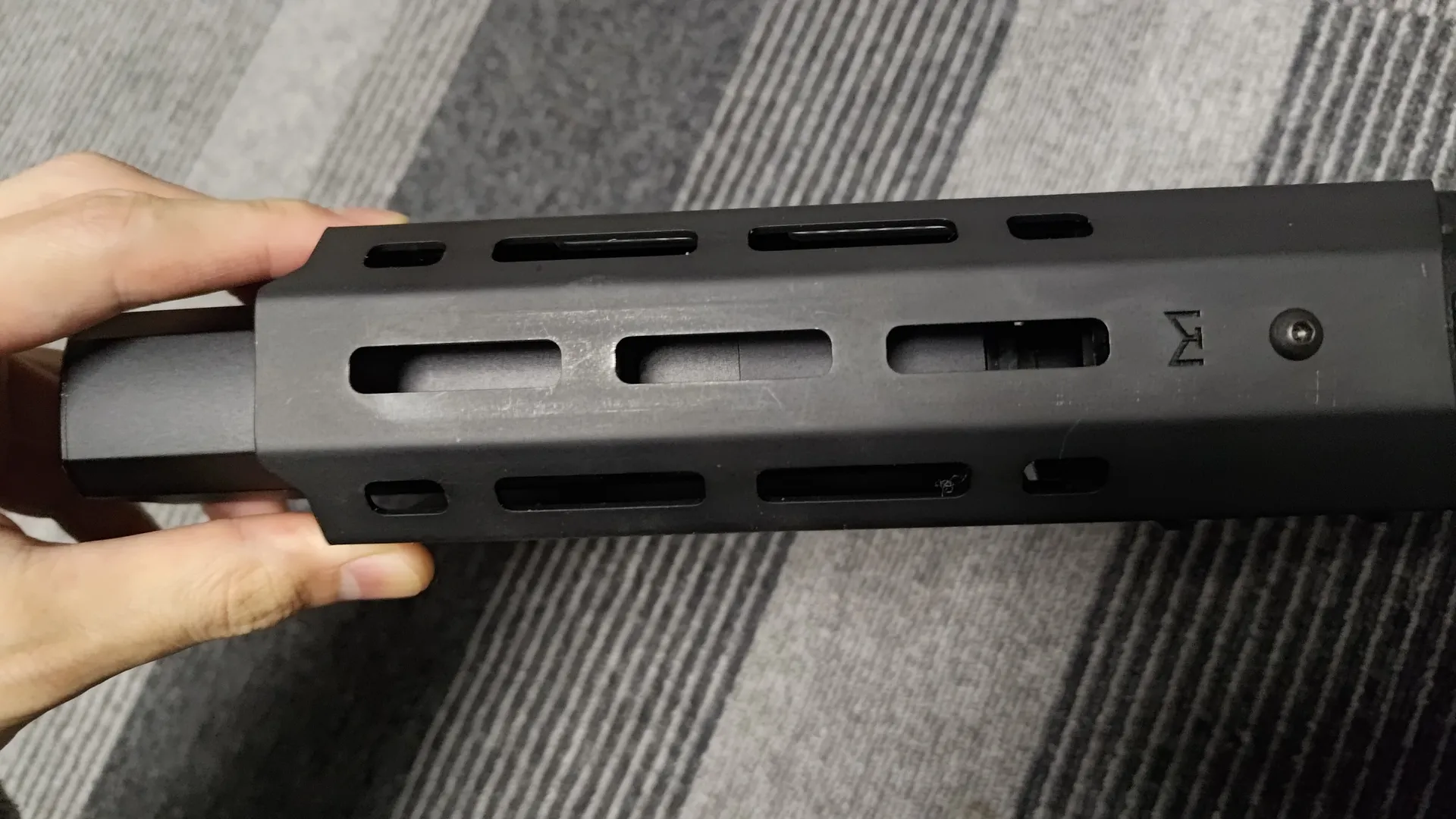 主な用途としてはライトのオフセットマウントをm-lokで直接取り付けるとかでしょうか。 幅が広い拡張ハンドガードなので、そのほうが左右にマウントを取り付ける様も多少スリムに取り付けられると思います。