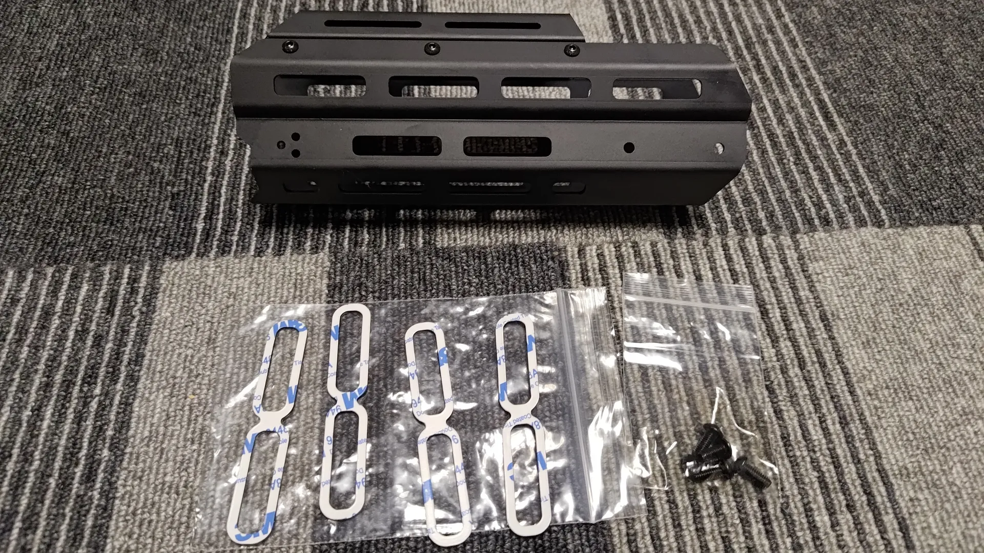 m-lok用の補強テープなのですが、用途としては拡張ハンドガード内側に貼ってm-lokでの装備類の取り付けを補助するものなのですが、粘着が弱すぎてまともに貼り付かないため自分は捨てました(´・ω・`)