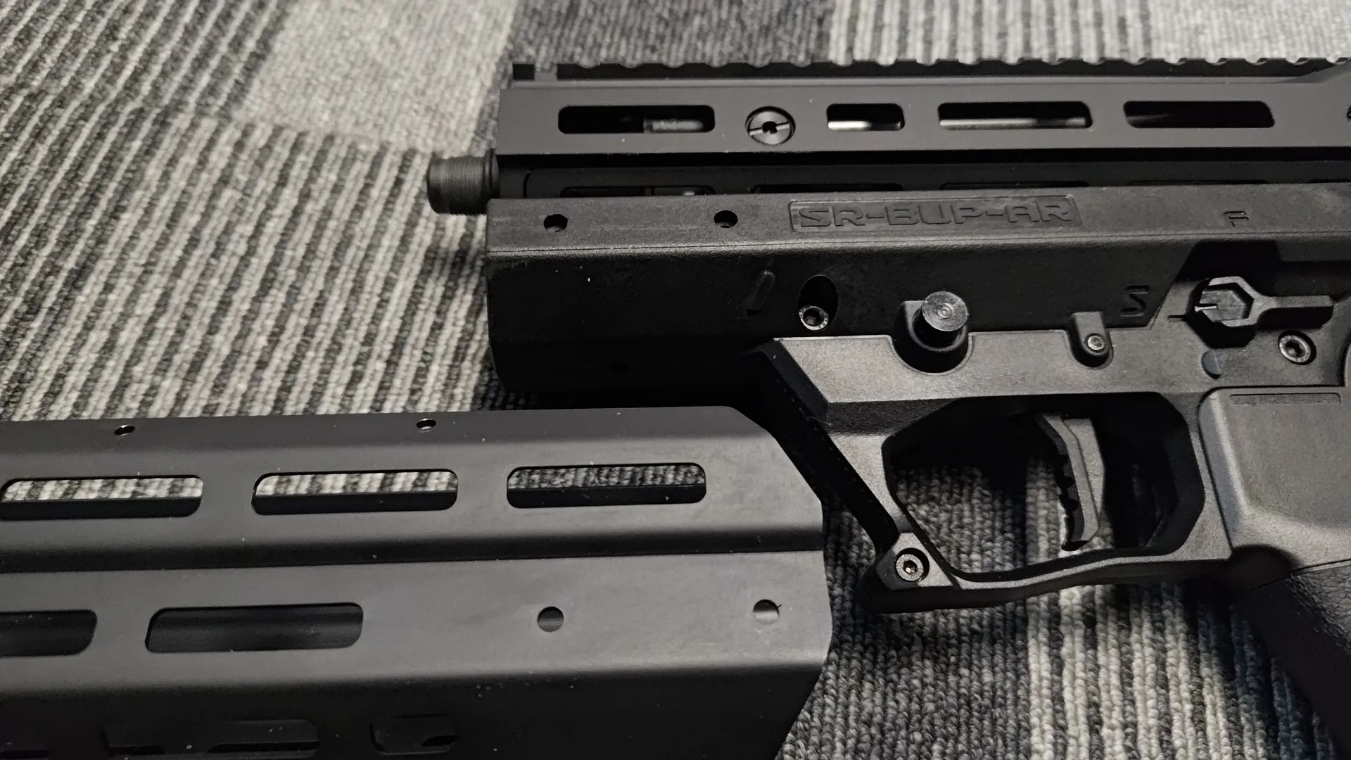 ただサプレッサーはつけないけど、拡張性は増やしたいというケースならもともと長いハンドガードを使用することで、SARB-15本体よりもハンドガードが出るようにすれば、もともとのハンドガードにフォアグリップやバイポッド等をつけられるので拡張ハンドガードは不要かもしれません。