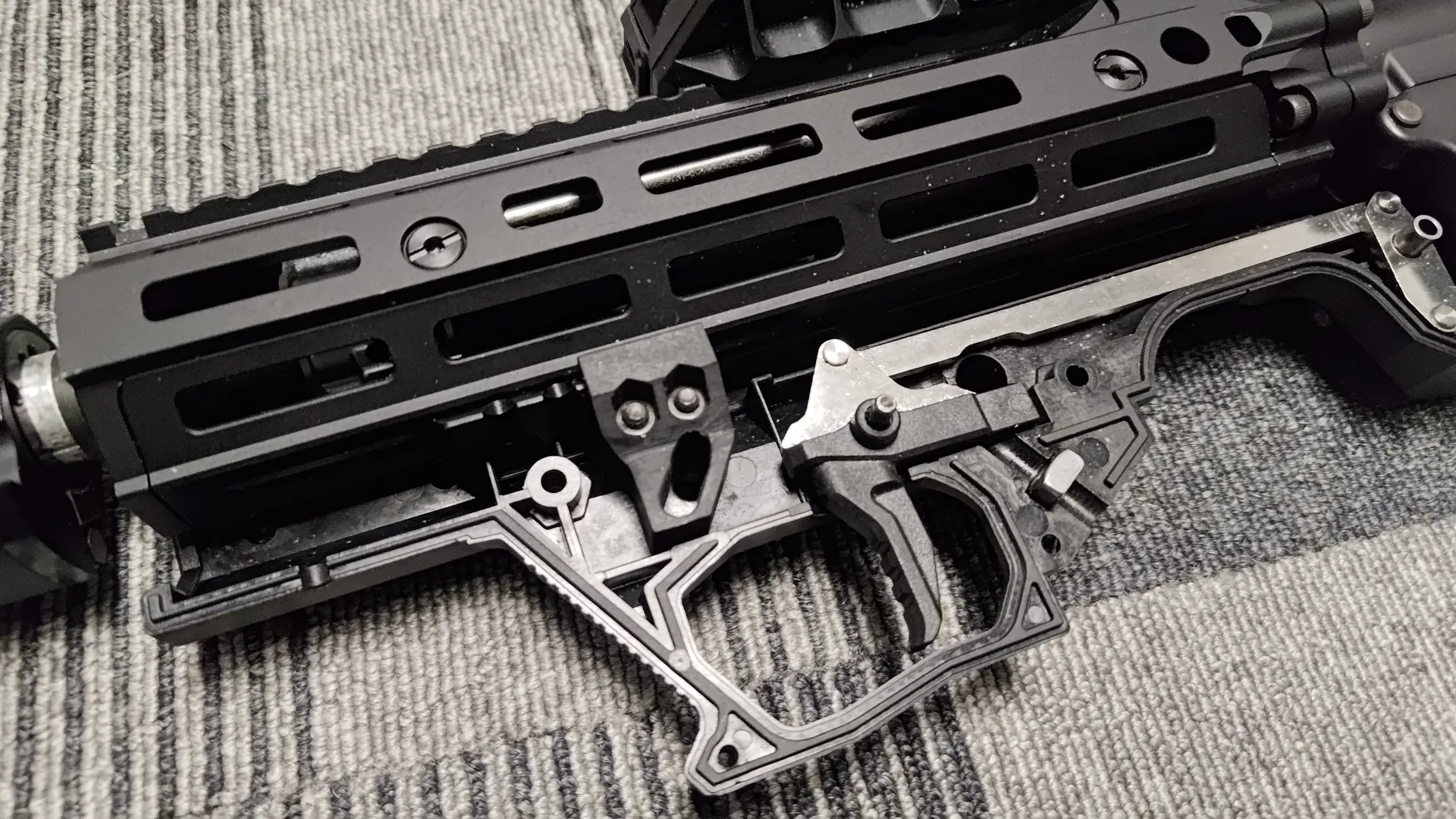ただこの拡張ハンドガードの欠点としては、トップカバーを外さないとアッパーレシーバーを外せないのと、ハンドガードによってはトップカバーを外しても、拡張ハンドガード自体も外さないとアッパーレシーバーが外せないというメンテナンス性の悪化が挙げられます。