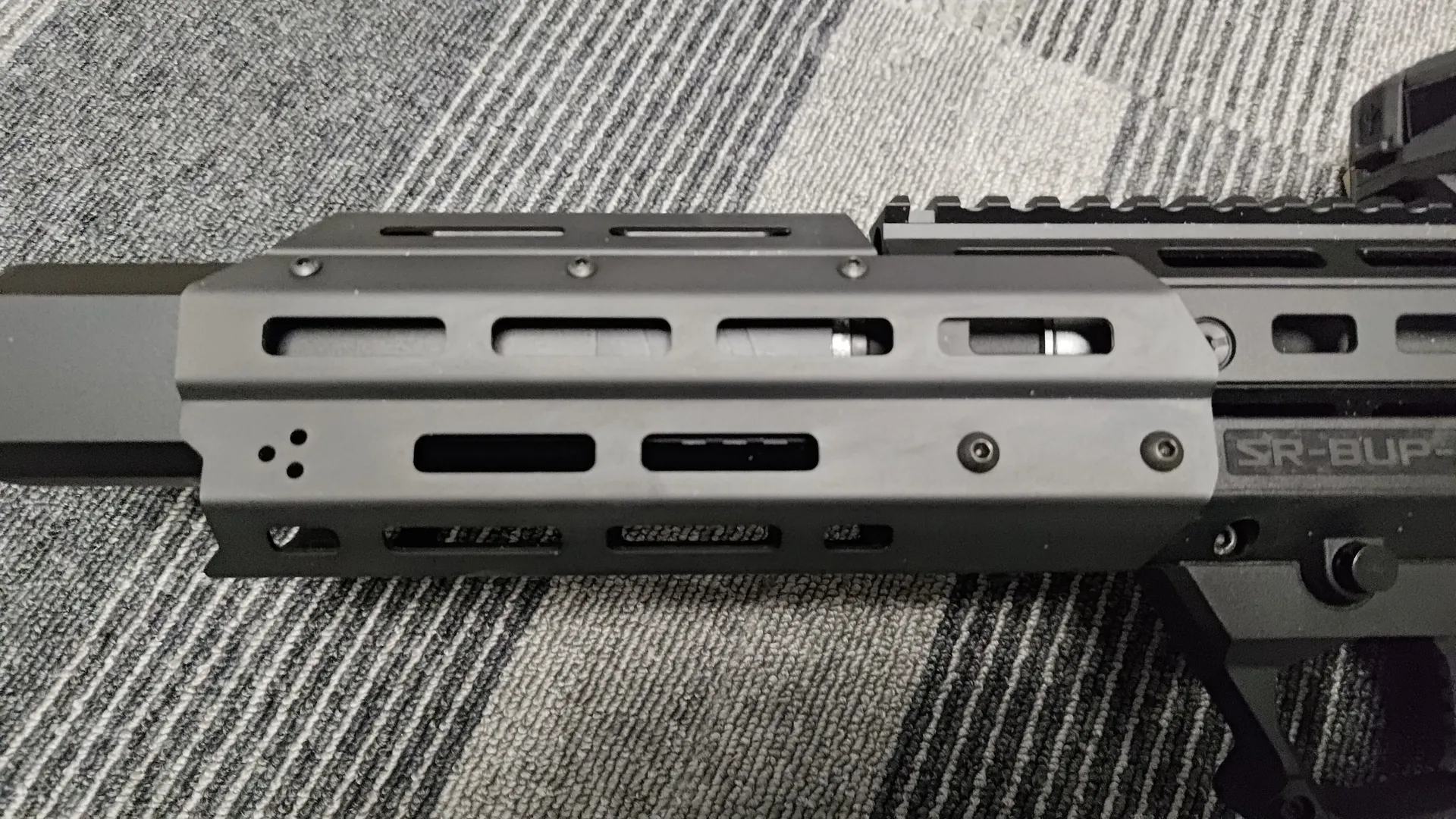 ただ上述したようにハンドガードとの相性もあり、SARB-15本体と比べて少しでもハンドガードが上を向いていると拡張ハンドガードが干渉して拡張ハンドガード自体が取り付けられない状態になります。
