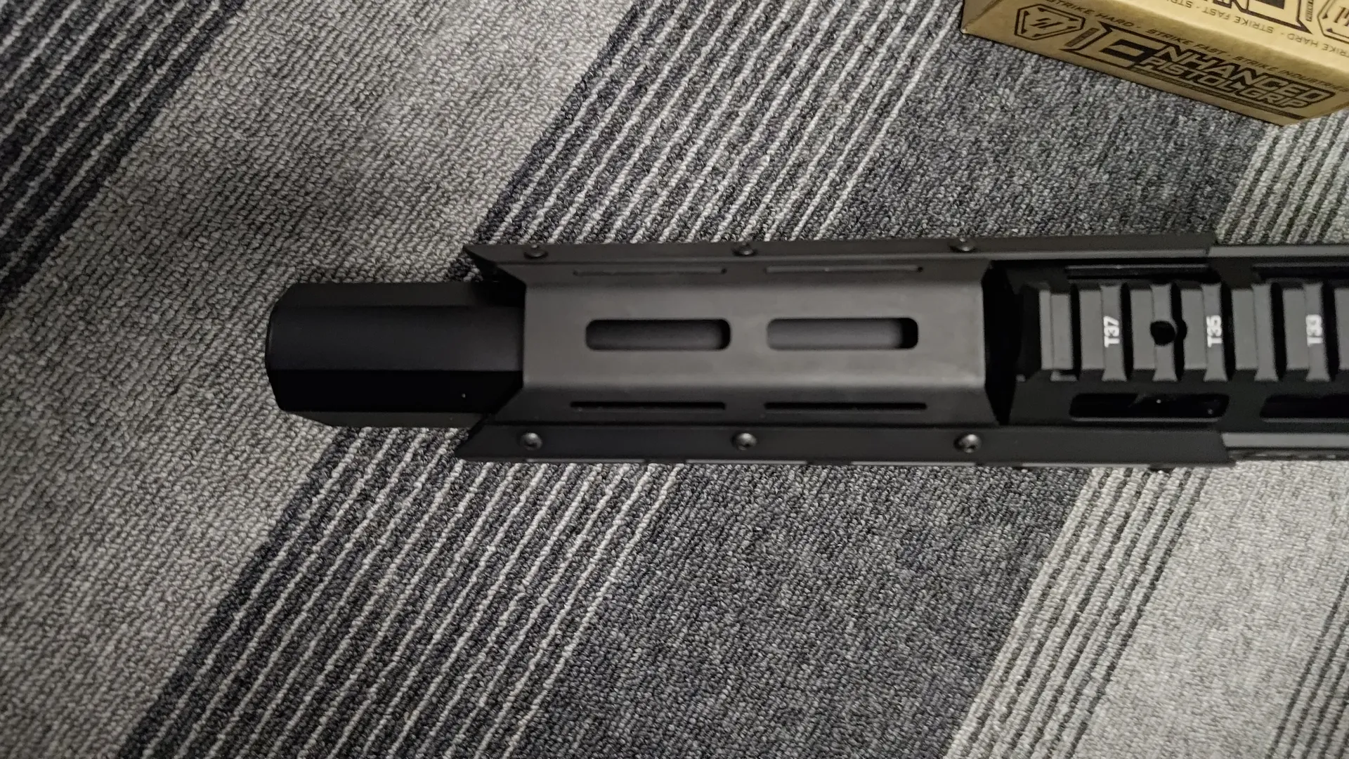 MTR16のハンドガードの場合でも拡張ハンドガードは使用可能ですが、9.5インチよりも長いためトップカバーは使用不可です(写真は仮で載せてるだけなのでボルト留めしてません)