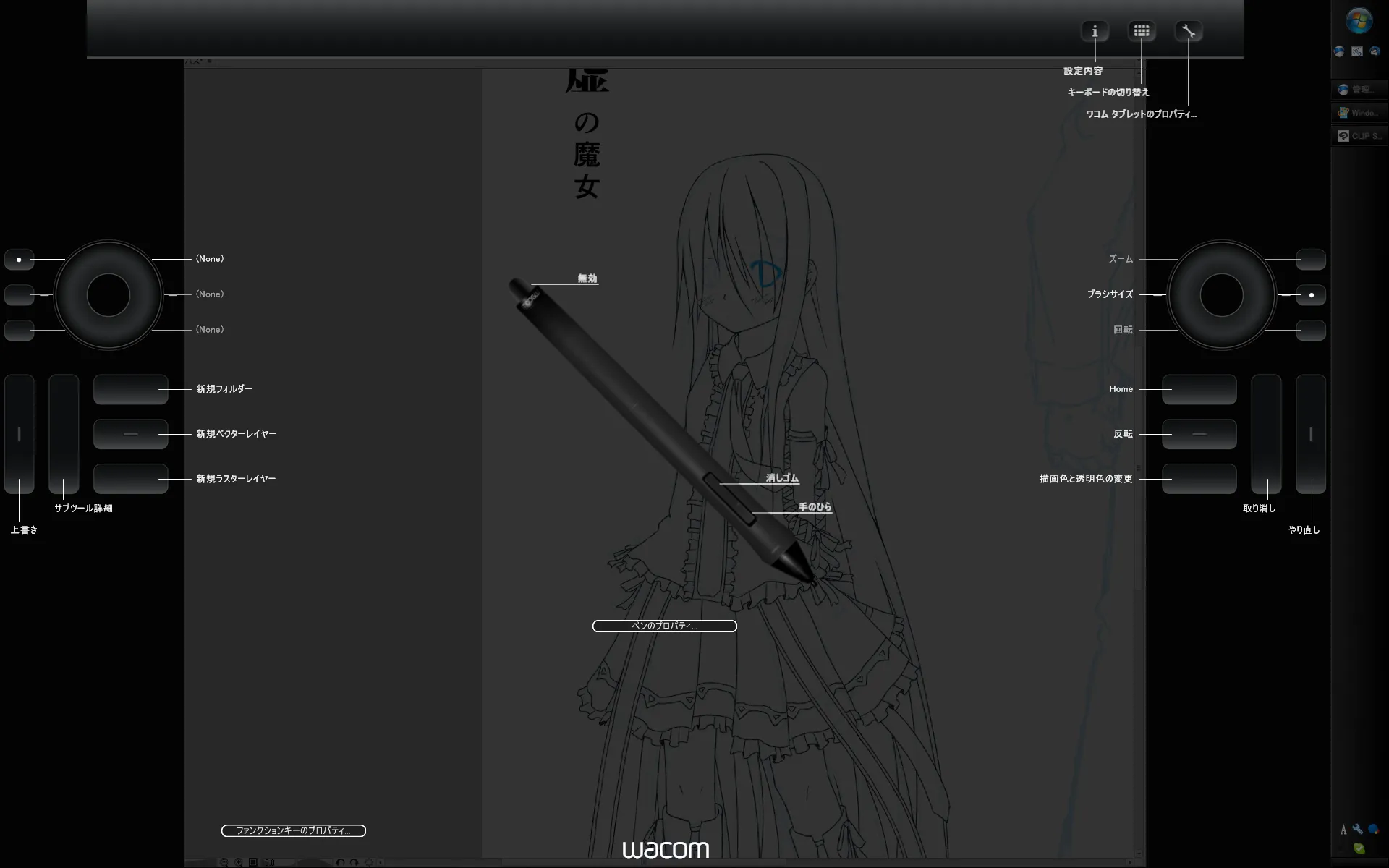 あと基本的にペンを持つ側のファンクションキーやタッチホイールは通常ほとんど使いません(自分はファンクションキーだけは割り当ててますが、タッチホイールに関しては完全に未使用)